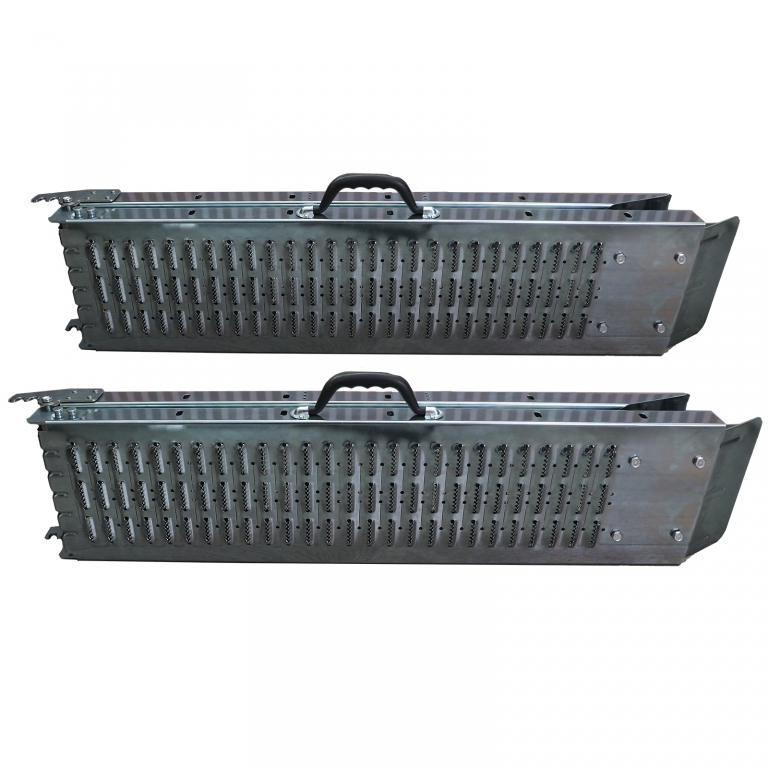 Cu acest set de rampe de încărcare pliabile din 2 piese de la RAMROXX, poți încărca și descărca cu ușurință și în siguranță vehicule precum ATV-uri, motociclete, tractoare de gazon și altele. Aceste rampe versatile oferă o soluție stabilă și confortabilă pentru transport. Datorită funcției de pliere, rampele pot fi depozitate într-un mod care economisește spațiu. Când sunt pliate, măsoară doar 91,5 x 22,5 x 9 cm, ceea ce le face ușor de transportat și depozitat în vehiculul tău. Având o greutate de doar 8 kg fiecare rampă, sunt ușor de manevrat fără a sacrifica stabilitatea. Suprafața antiderapantă asigură o tracțiune optimă și previne alunecarea în timpul încărcării și descărcării - pentru siguranța maximă și protecția vehiculului tău. Cu o lungime de 180 cm și o lățime de 22,5 cm, rampele oferă suficient spațiu pentru o varietate de vehicule. Fiecare rampă suportă până la 250 kg, oferind setului o capacitate totală de încărcare de 500 kg - ideal pentru sarcini grele. Date tehnice:- Lungime: 180 cm- Lățime: 22,5 cm- Dimensiuni pliate: 91,5 x 22,5 x 9 cm- Greutate: 8 kg per rampă- Capacitate de încărcare: 250 kg per rampă (total 500 kg)- Material: Metal Nou & în ambalaj original – soluția ideală pentru problemele tale de încărcare și transport!Informații de siguranță ale produsuluiProducător: Carparts-Online GmbHBrauckstr. 47, 58454 WittenContact: info@carparts-online.deInstrucțiuni de siguranță:Atenționare de siguranță pentru ambalaj:Există un risc de accidentare din cauza marginilor ascuțite de hârtie, carton sau folie, precum și din cauza agrafelor metalice ascuțite.Materialul de ambalare nu este o jucărie. Risc de sufocare pentru copii sau animale.Atenționare de siguranță pentru produs:Articolul ar trebui să fie utilizat doar pentru funcția sa descrisă inițial. Dacă ai întrebări, te rugăm să ne contactezi folosind detaliile de contact furnizate mai sus