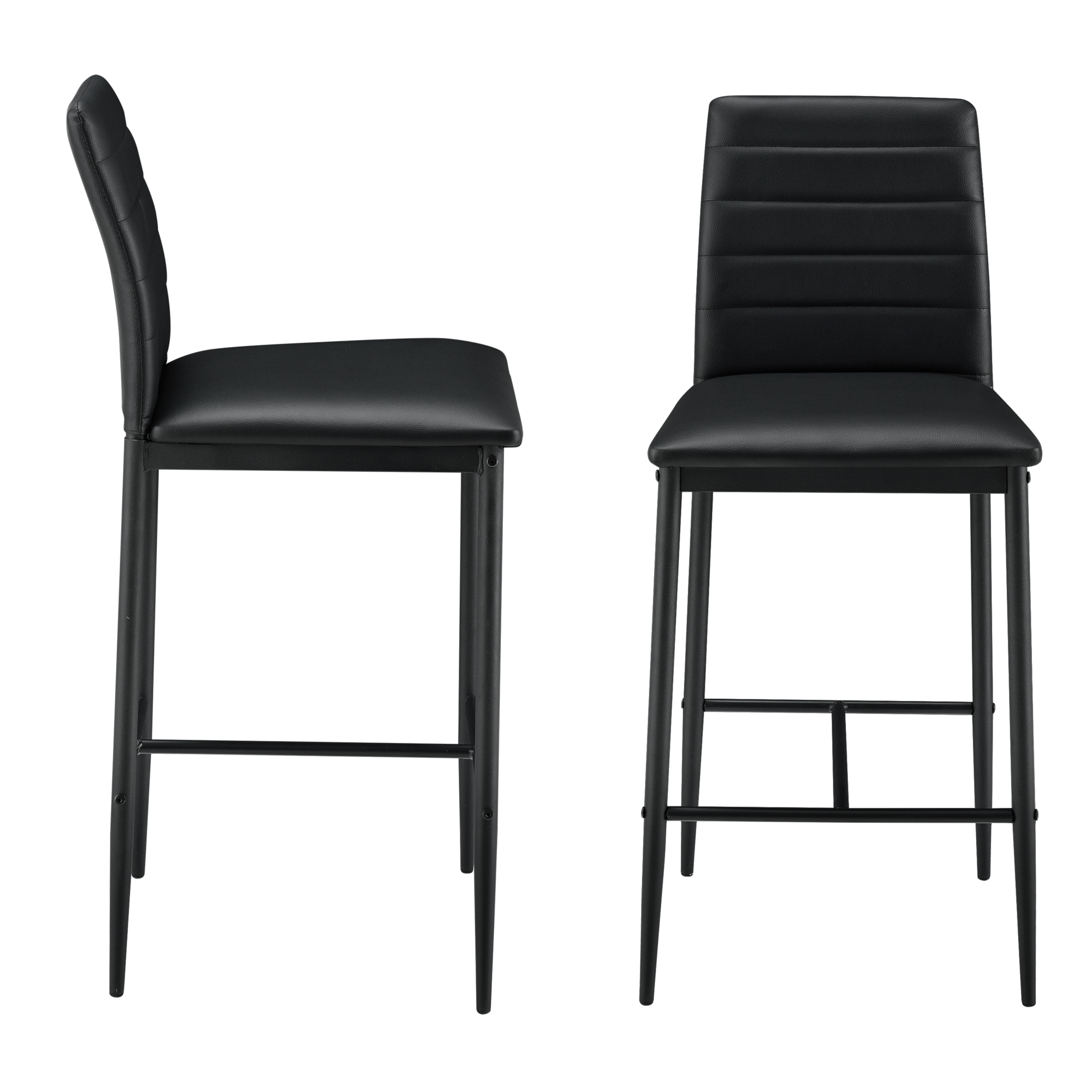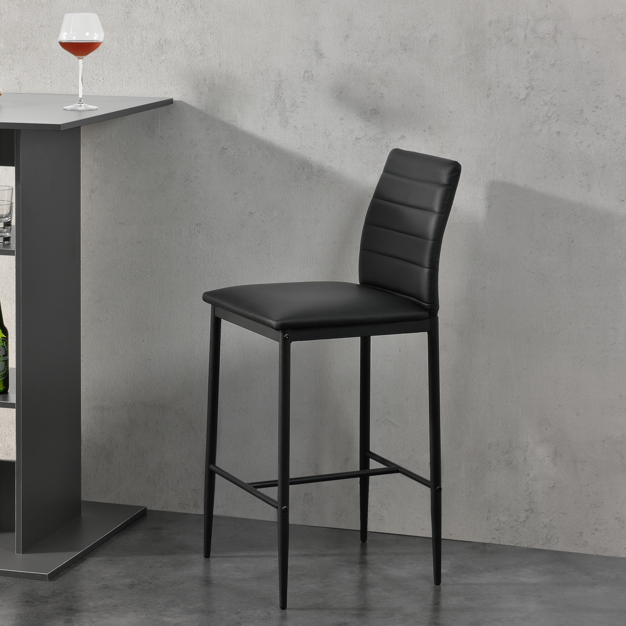 2er-Set Barstuhl Lidköping mit Rückenlehne und Polster aus Kunstleder Schwarz en.casa