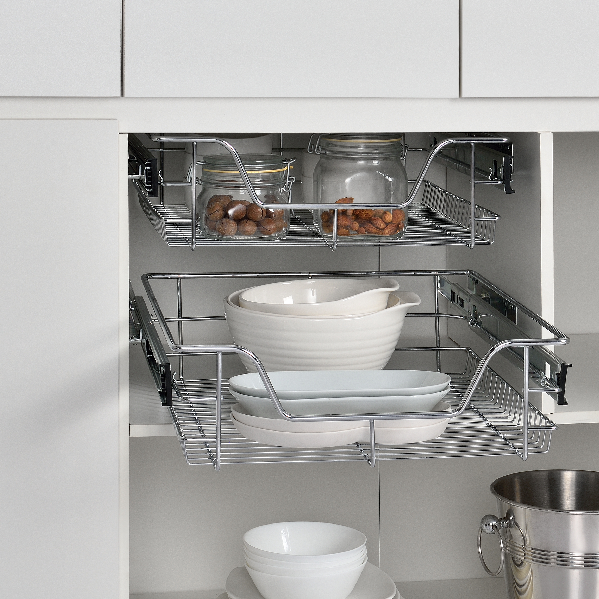 Die beiden vielseitig einsetzbaren Schubladenkörbe sind die optimalen Helfer für Ihre Küche, Ihr Bad oder Ihren Schlafzimmerschrank.