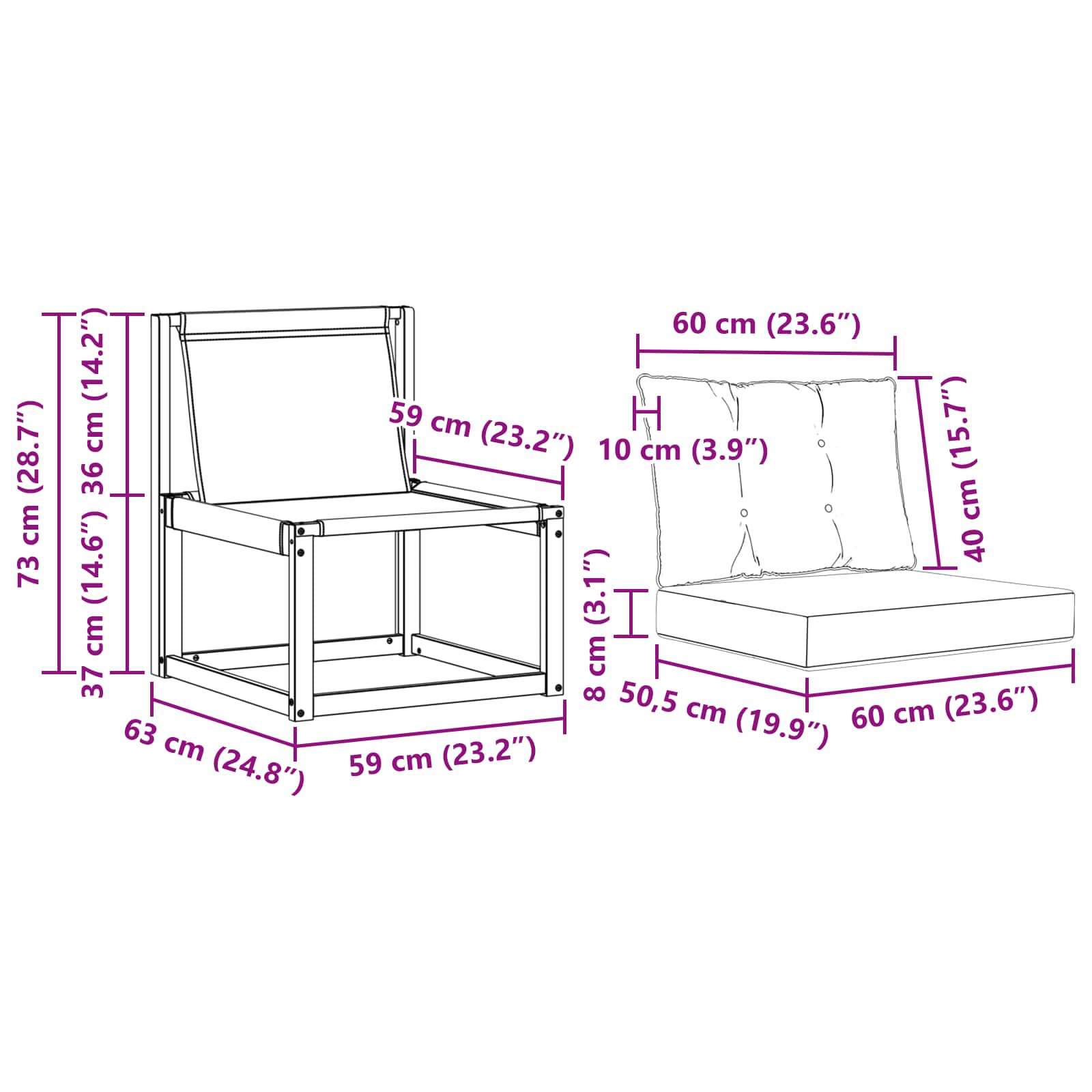 - 3 x Pernă pentru Șezut: 60 x 50,5 x 8 cm (LxWxH)