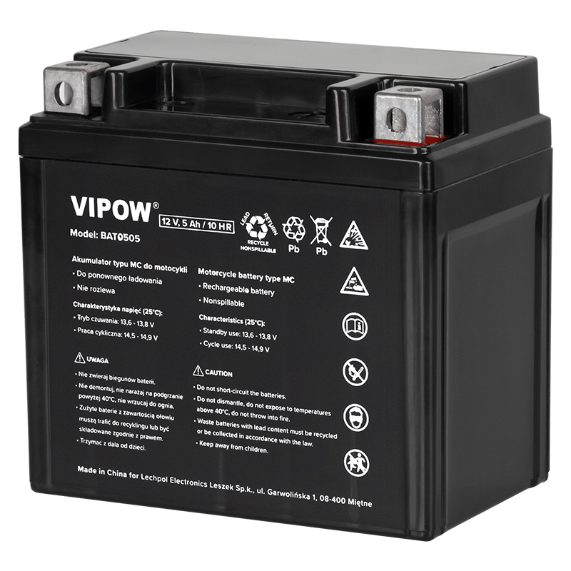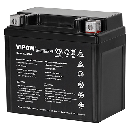 Descriere Acumulator moto Vipow 12V 5Ah, 70A