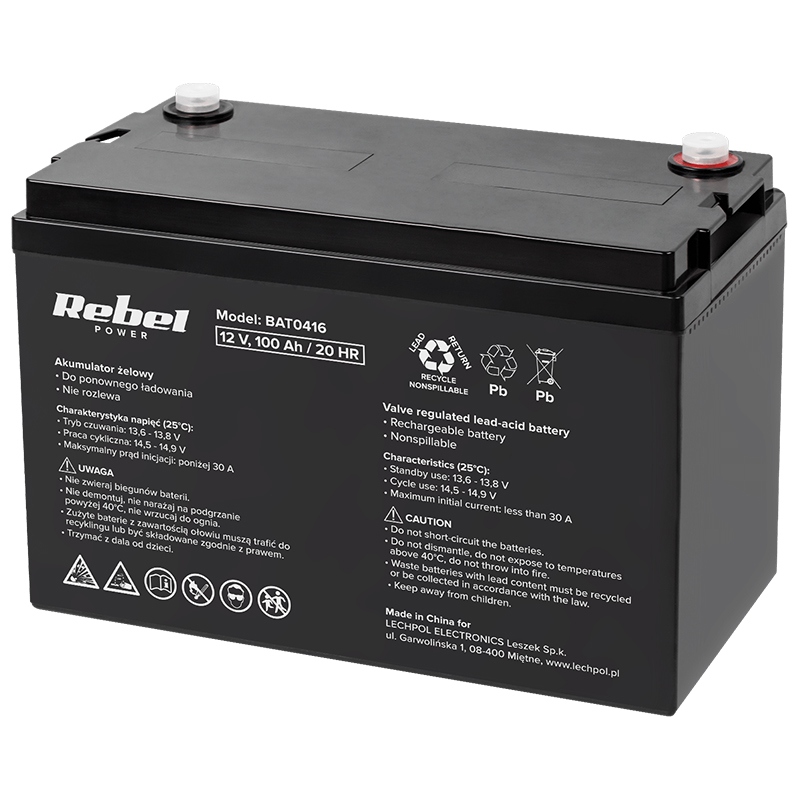Acumulator staționar AGM VRLA 12V 100Ah Rebel pentru UPS și backup