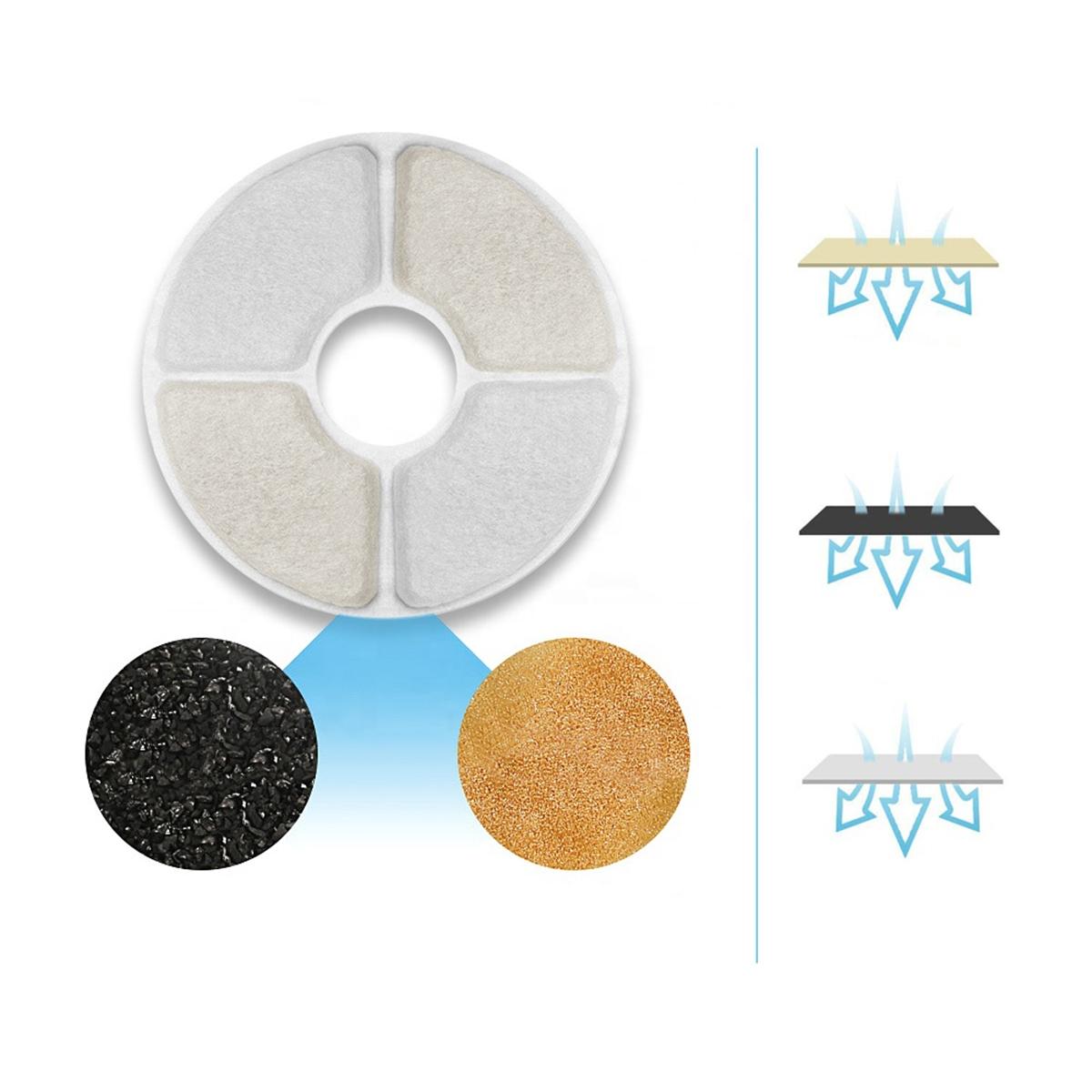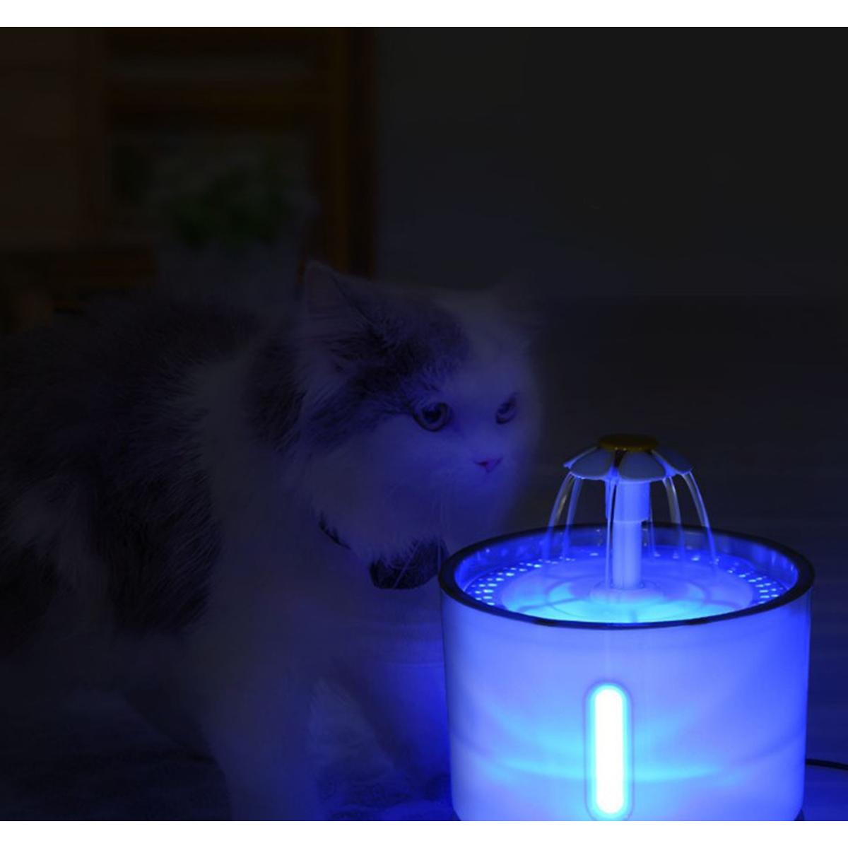 Adăpator automat pentru animale de companie. Design atractiv în formă de fântână cu mai multe duze. Un rezervor mare de apă cu o capacitate de până la 2,4 litri asigură o utilizare pe termen lung. Sistemul de filtrare (cu un filtru înlocuibil) oferă apă proaspătă și curată pentru animalul nostru de companie. Adapatorul este dotat cu o pompa silentioasa si eficienta, aparatul putand functiona cu succes noaptea. Aparatul are trei moduri de funcționare diferite (debitul de apă). Siguranța de utilizare este sporită de funcțiile de oprire automată și semnalizare apă scăzută (cu iluminare de fundal LED).