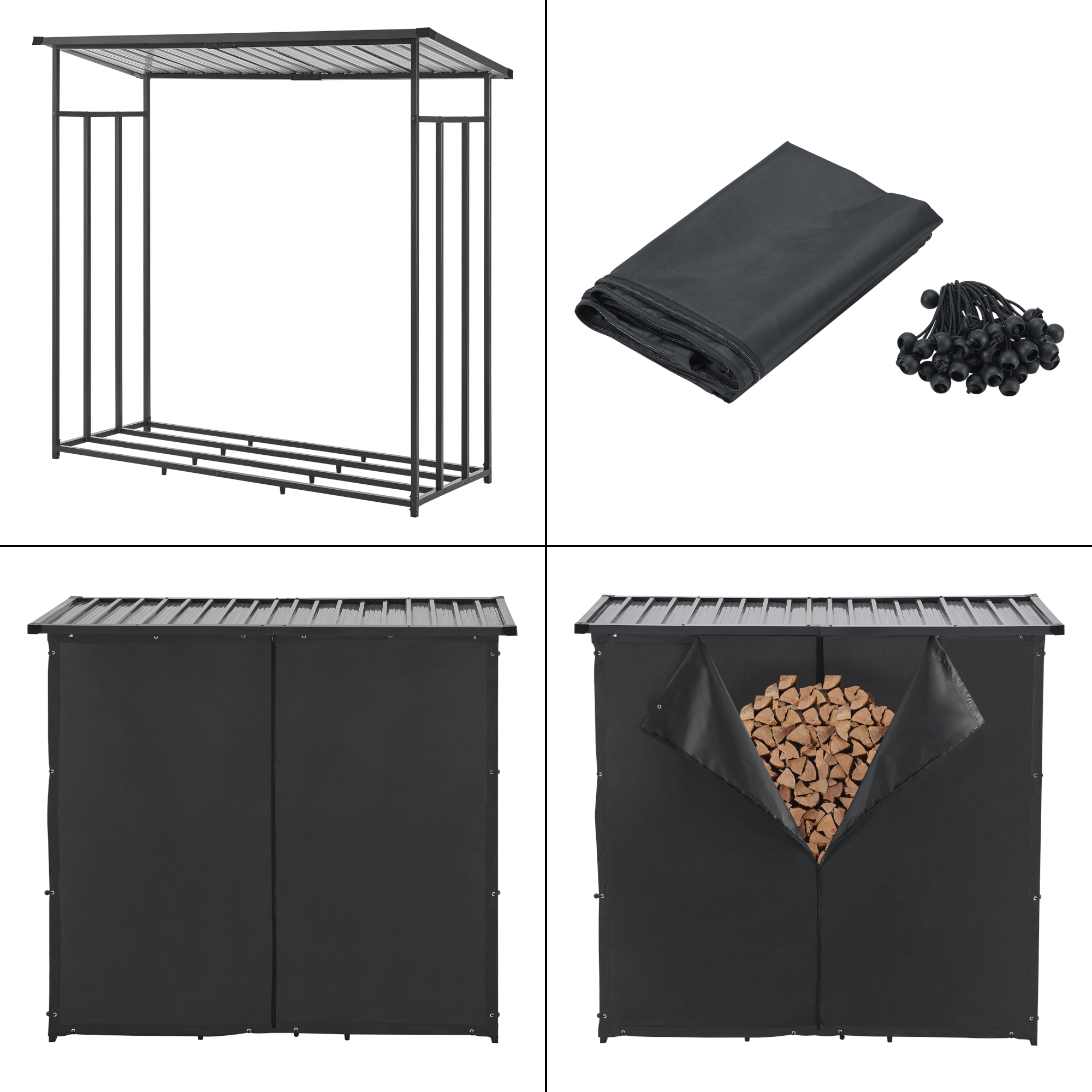 Adapost pentru lemne Yakutat negru cu prelata, 185x180x70 cm