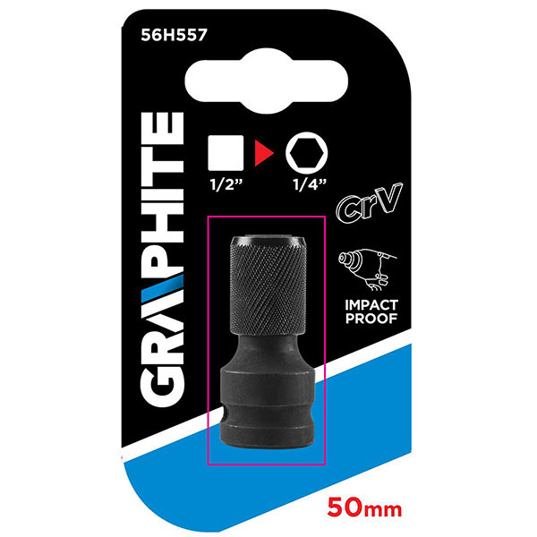 Adaptor de la 1/2" patrat la 1/4" HEX GRAPHITE 56H557 HardWork ToolsRange
