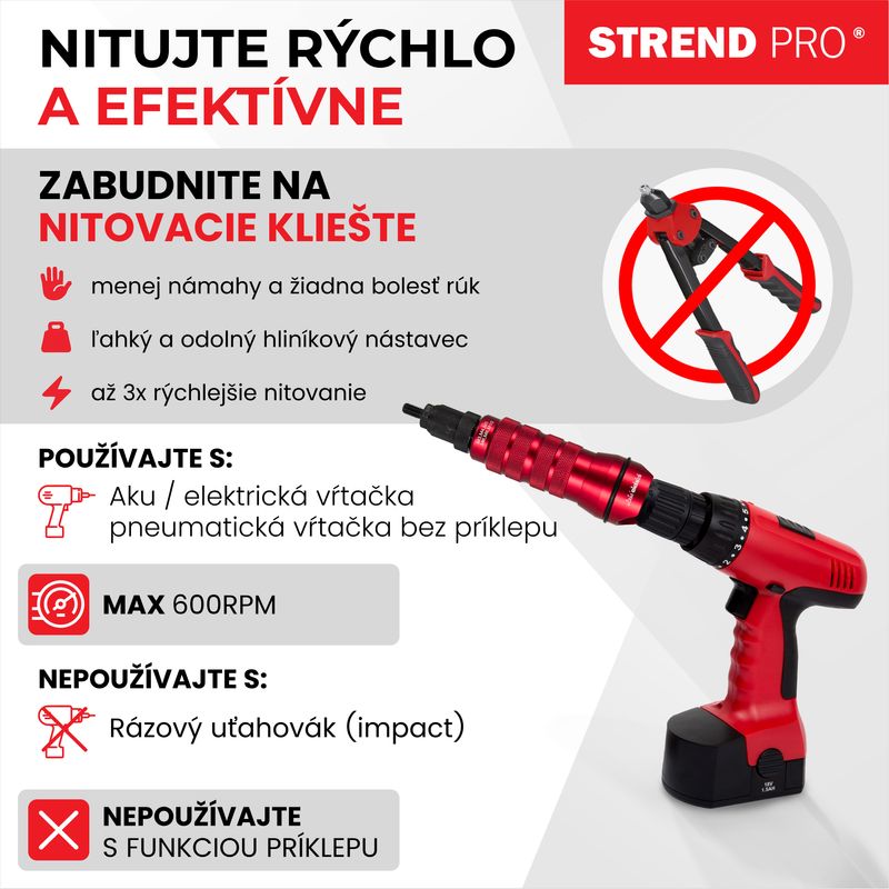 Descriere Adaptor nituit piulite bormașină Strend Pro