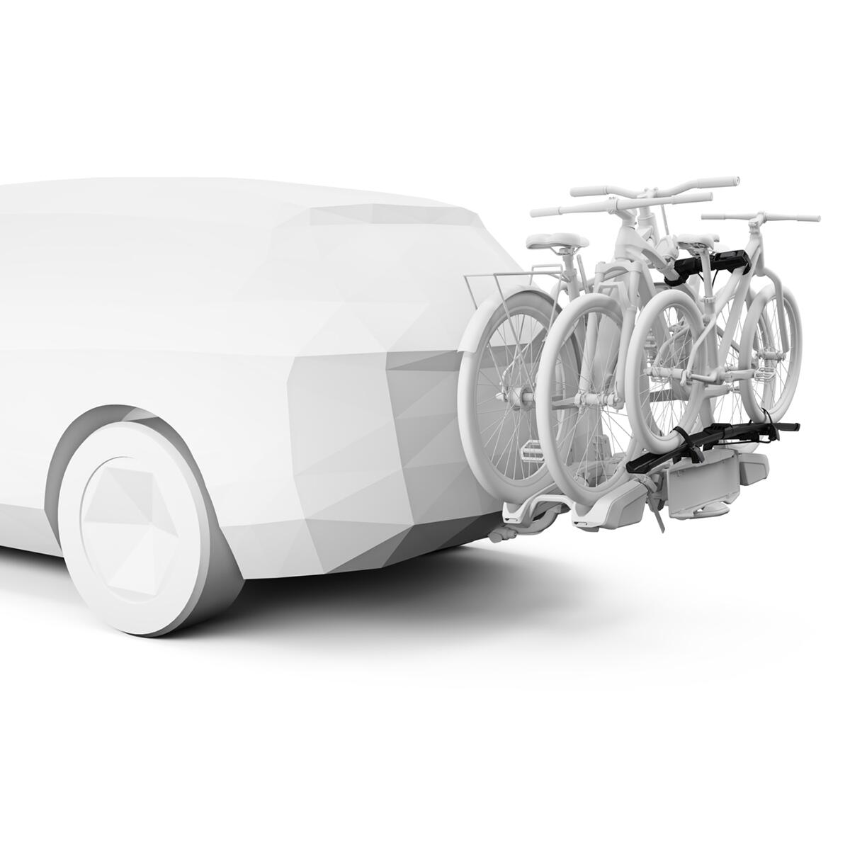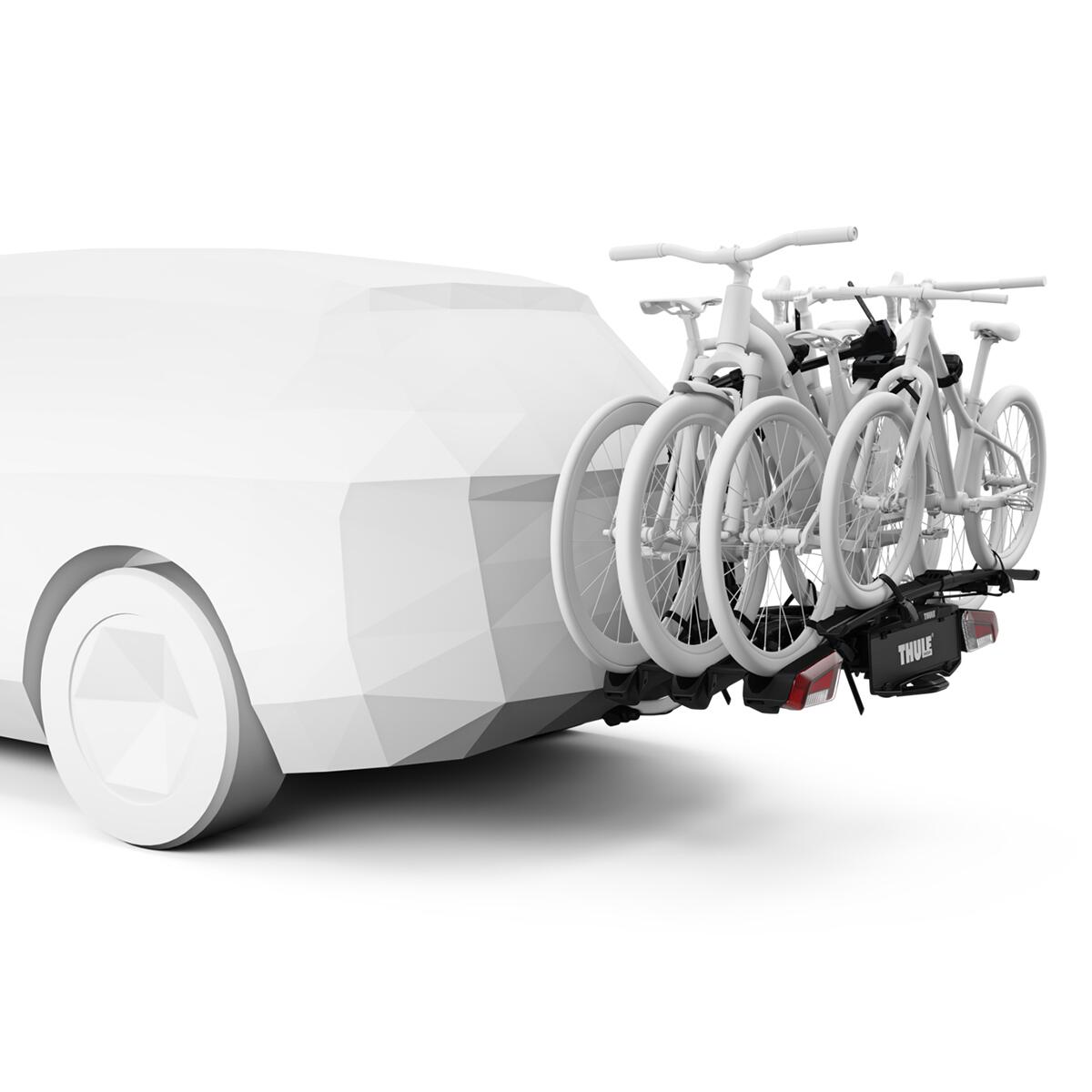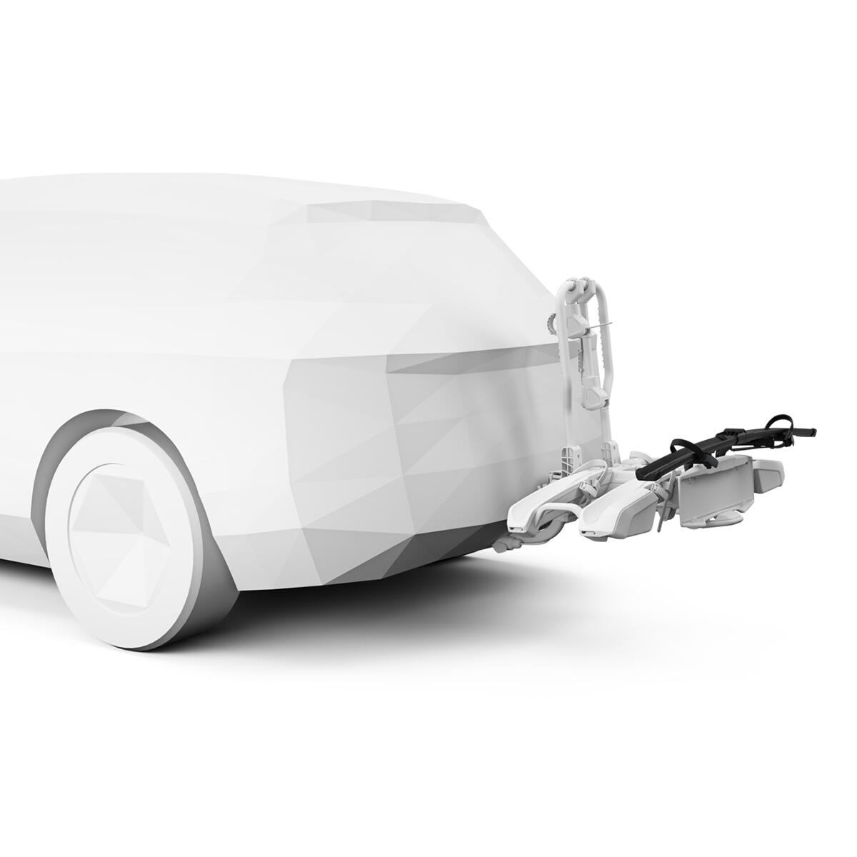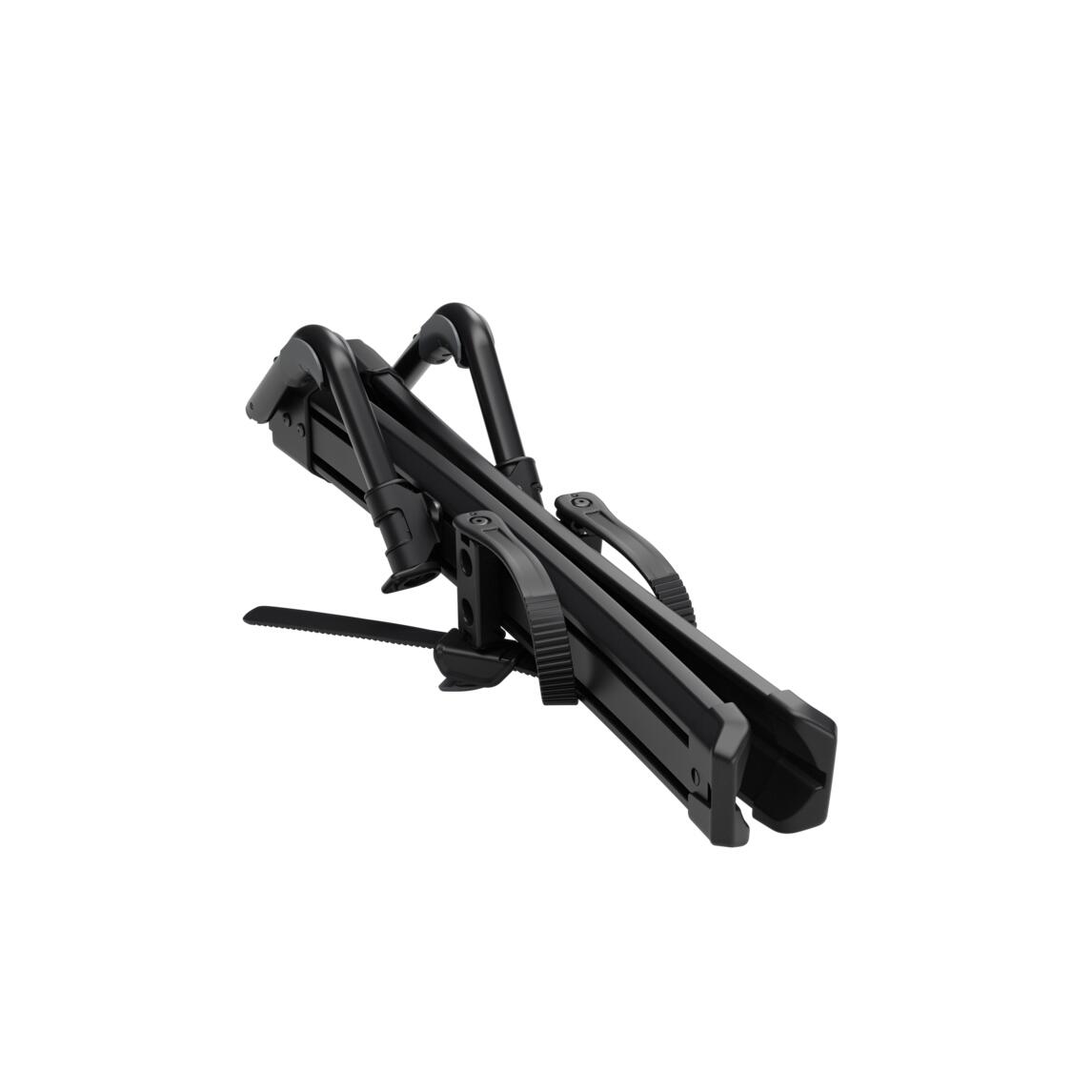 Produsul este conceput pentru compatibilitate excelentă cu sistemul Thule EasyFold 3, oferind o fixare stabilă a cadrului și a roților. Brațele detașabile sunt prevăzute cu sistem de închidere Thule AcuTight, care emite un clic atunci când se atinge cuplul optim, pentru o prindere corectă și fără bătăi de cap. În plus, suporturile pentru roți cu prindere rapidă a curelelor fac încărcarea bicicletei mai simplă și mai eficientă.
