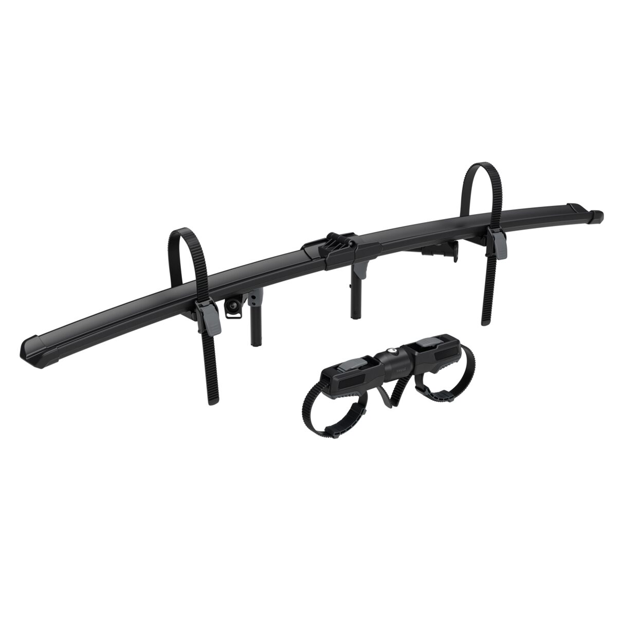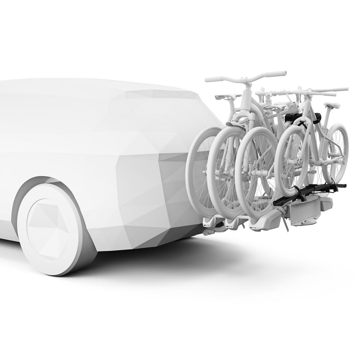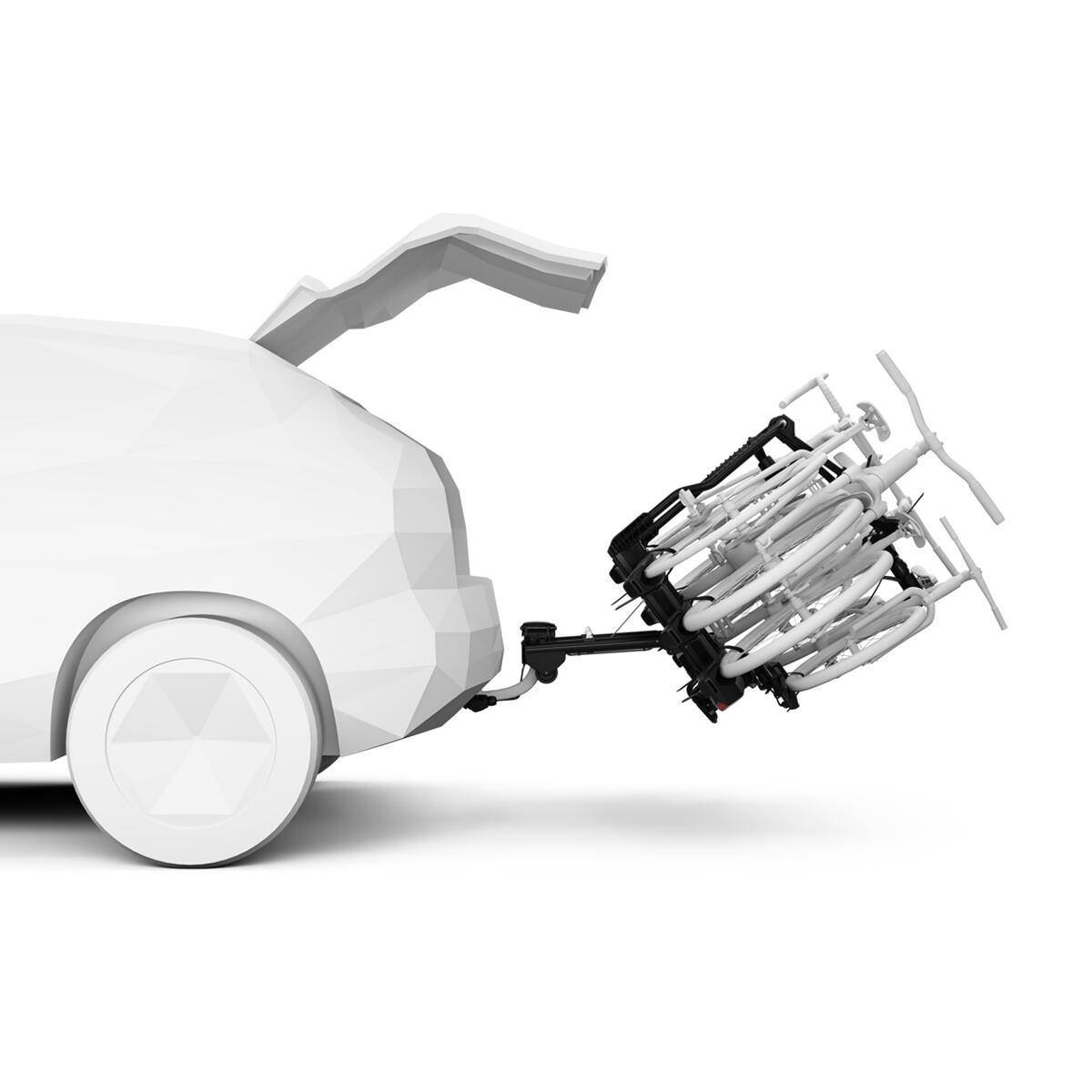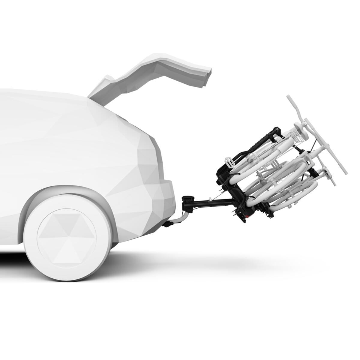 Produsul este conceput pentru compatibilitate excelentă cu sistemul Thule EasyFold 3, oferind o fixare stabilă a cadrului și a roților. Brațele detașabile sunt prevăzute cu sistem de închidere Thule AcuTight, care emite un clic atunci când se atinge cuplul optim, pentru o prindere corectă și fără bătăi de cap. În plus, suporturile pentru roți cu prindere rapidă a curelelor fac încărcarea bicicletei mai simplă și mai eficientă.