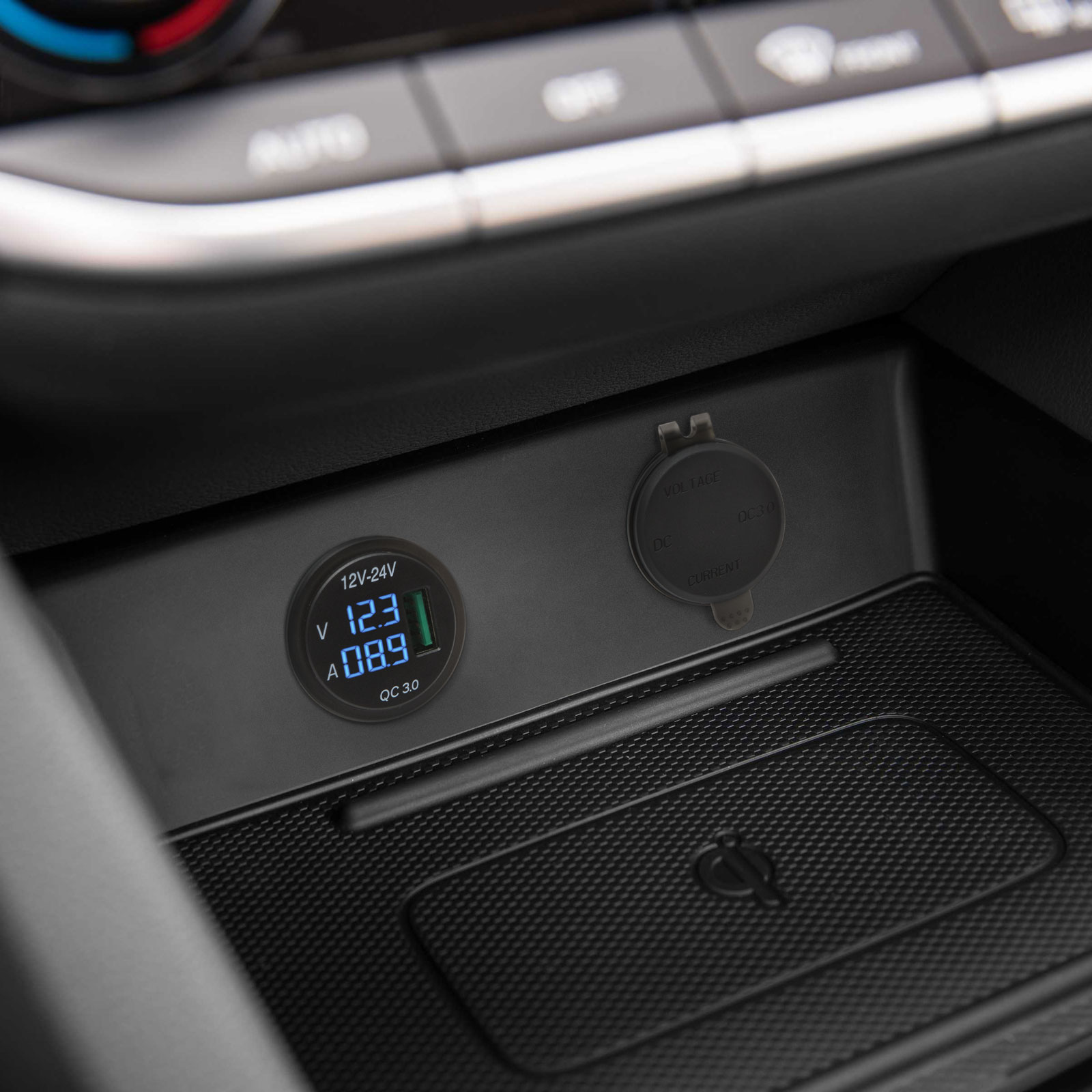 Adaptor USB cu montare în locul brichetei cu voltmetru şi ampermetru. Cu acest aparat nu mai aveţi nevoie de adaptor cu conectare în brichetă - acesta fiind cu montare fixă, se evită eventualele probleme de contact. Afişajul LED camuflat, de culoare albastră, indică tensiunea şi curentul momentan. Capacul de cauciuc împiedică pătrunderea impurităţilor în priza USB. Acest capac poate fi înlăturat după dorinţă.