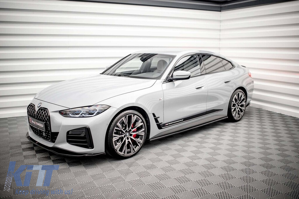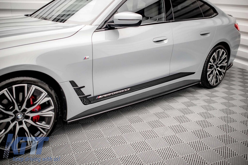 Aditive Maxton Design versiunea 2 pentru praguri BMW i4 G26 cu pachet M după 2021, lac negru Performance AutoTuning
