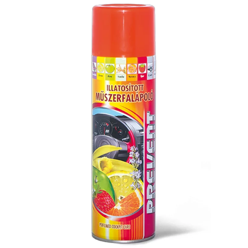 Aerosolul pentru întreținere bord cu silicon Prevent 500 ml este soluția practică pentru îngrijirea suprafețelor interioare din mașină. Potrivit pentru bord auto, elemente din plastic, piele artificială și cauciuc, produsul ajută la reîmprospătarea culorii, oferă un aspect mătăsos și lasă în urmă un plăcut parfum de portocale.