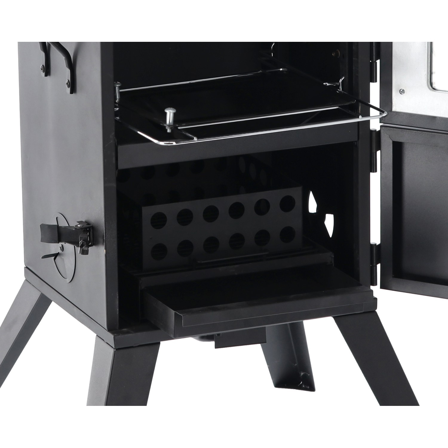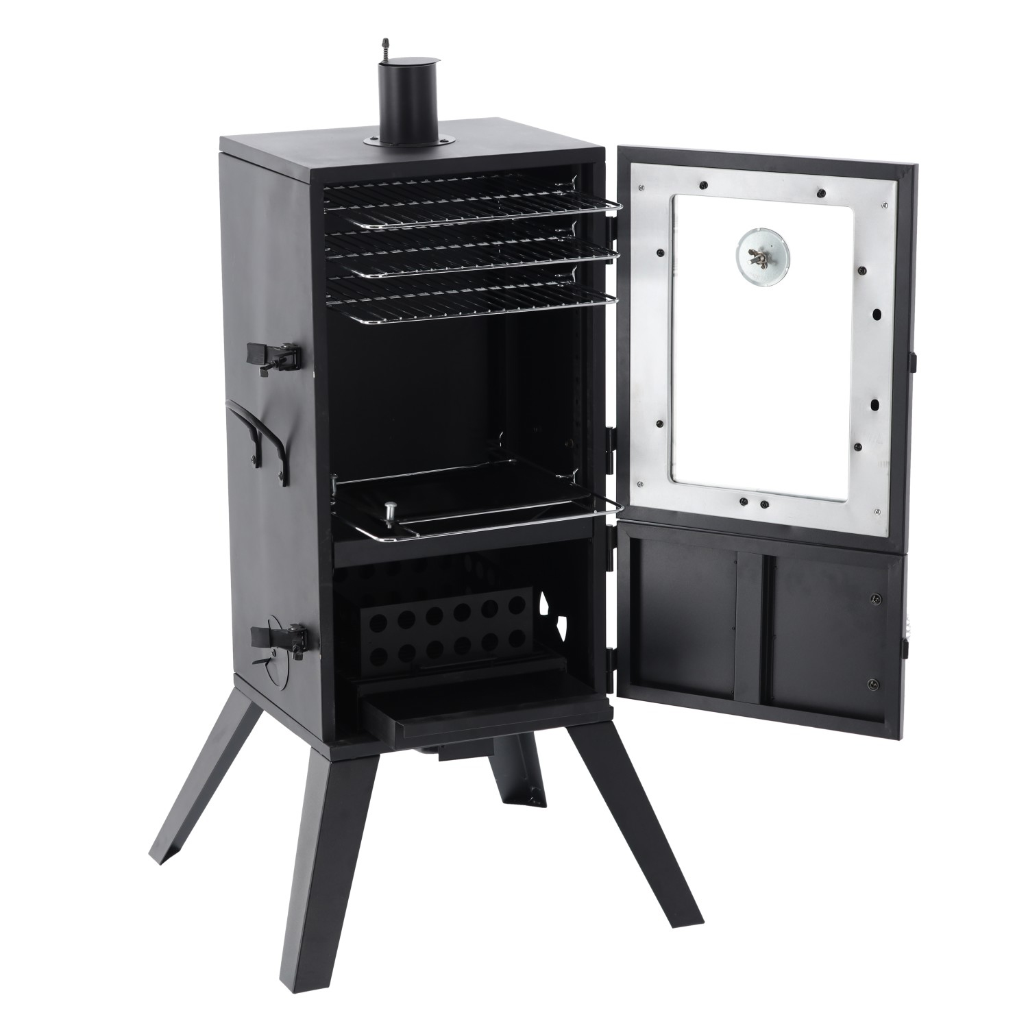 Afumatoare pentru gradina cu termometru integrat si 3 gratare, neagra