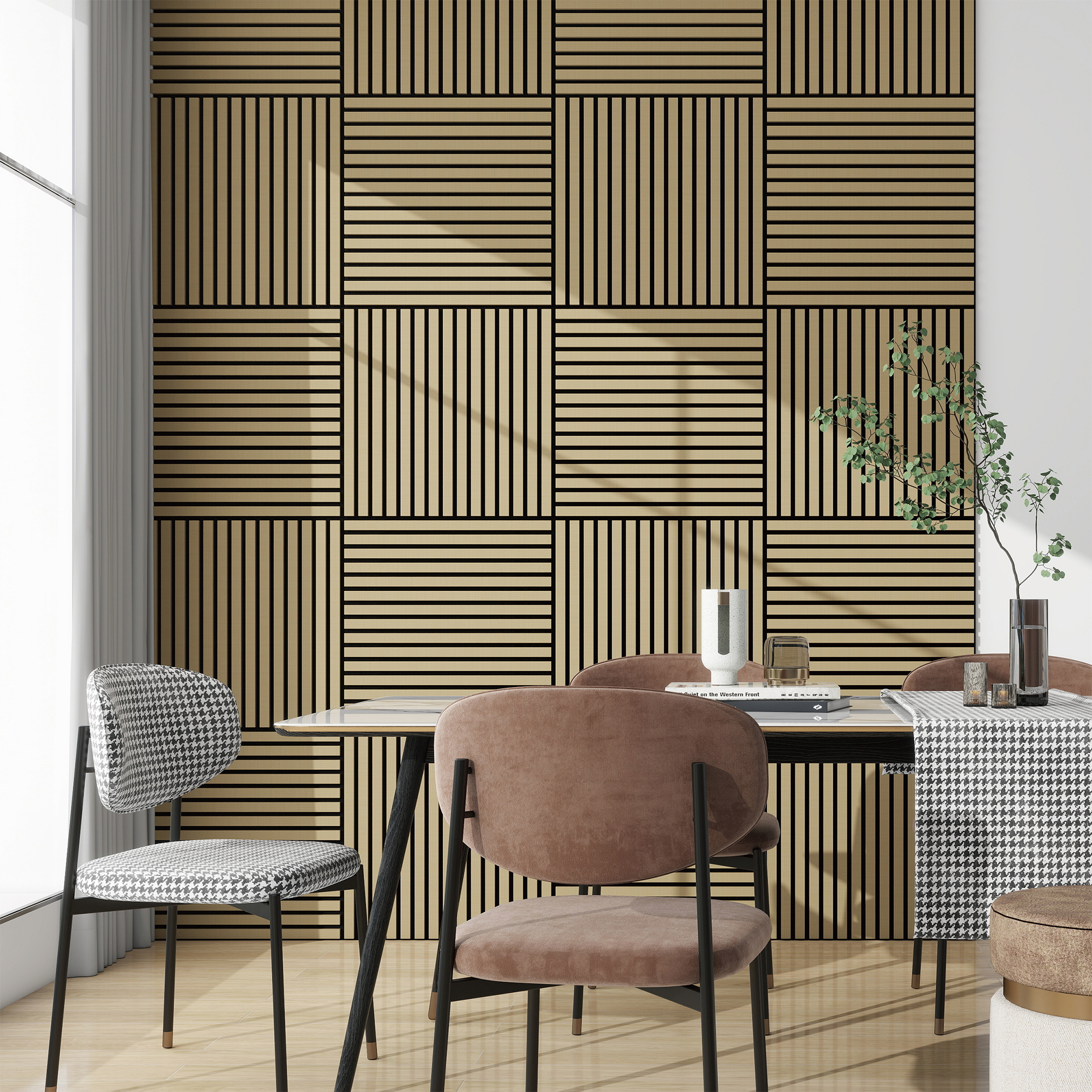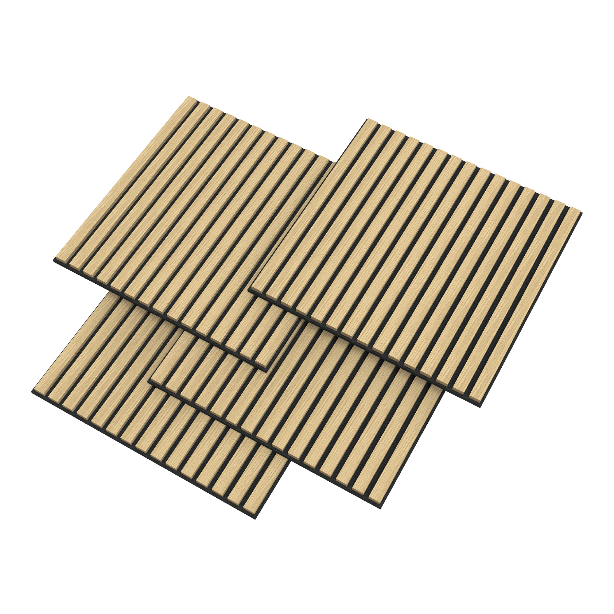 - Zwölf 3D-Akustikpaneele im Set mit geradlinigem Lamellendekor