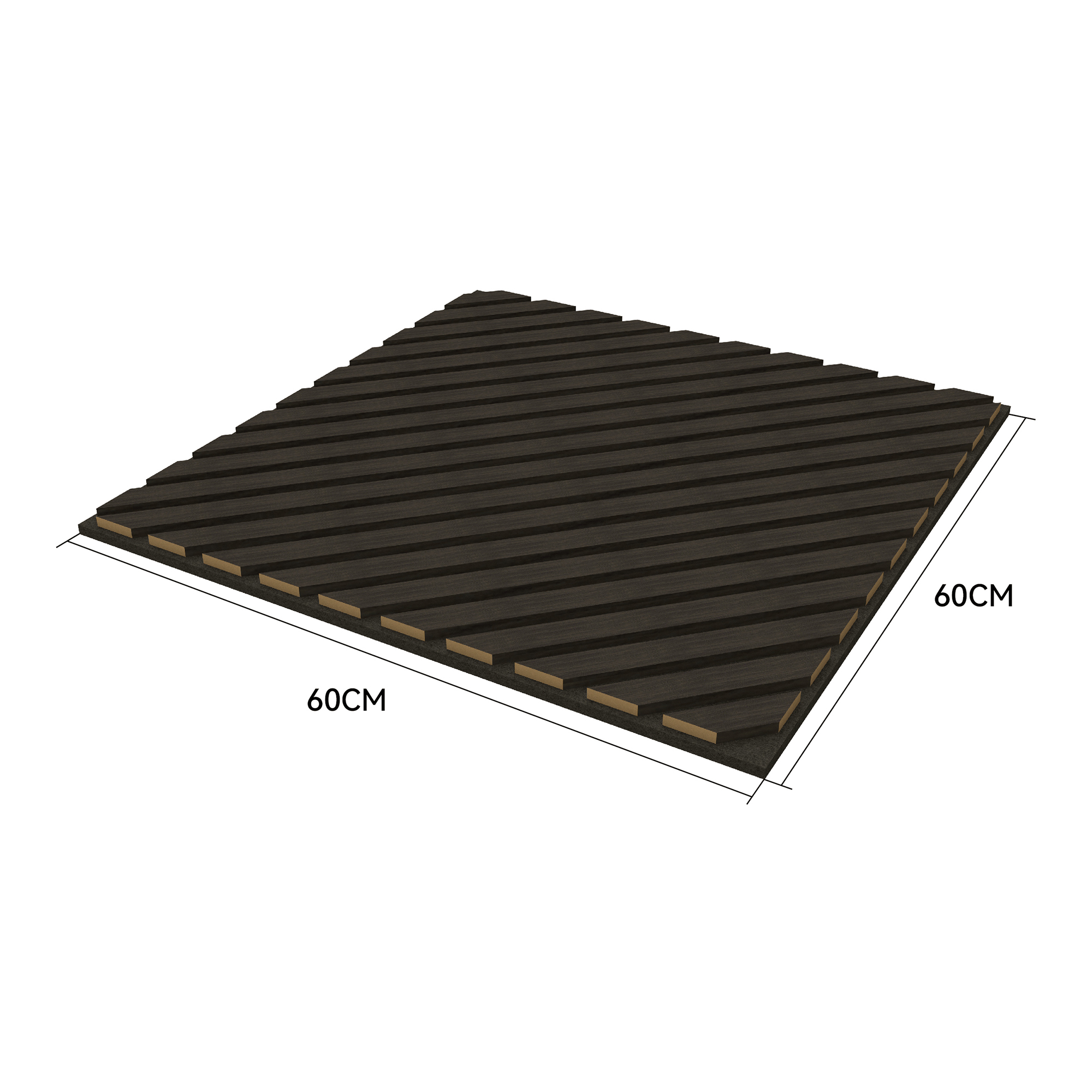 Dieses Wandpaneelset besteht aus acht Paneelen, die Ihren Wohnraum verschönern und zugleich zur Verbesserung der Raumakustik beitragen. Mit ihrem zeitlosen Design und den diagonal im 45°-Winkel verlaufenden Lamellen fügen sie sich harmonisch in verschiedenste Raumkonzepte ein.