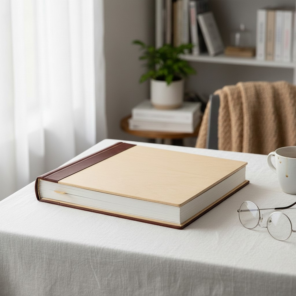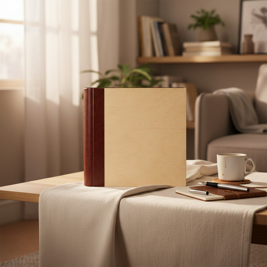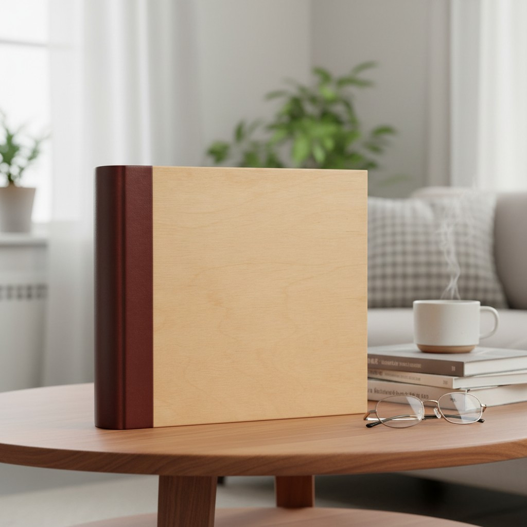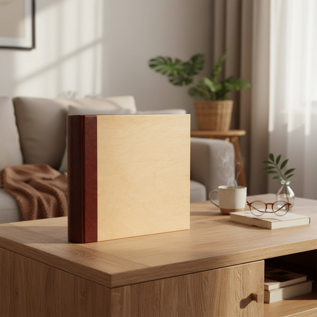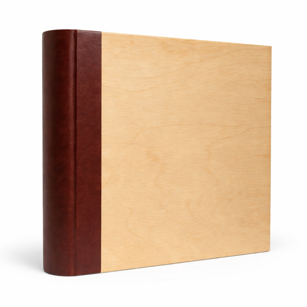 Album foto 10x15 cm pentru 500 poze, coperta lemn natur si piele eco