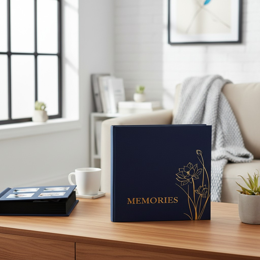 Pastreaza-ti amintirile intr-un album foto 10x15 elegant si practic, conceput pentru organizarea a pana la 500 de fotografii. Coperta albastra cu model floral auriu ofera un aspect rafinat, potrivit pentru vacante, aniversari, familie sau evenimente speciale.
