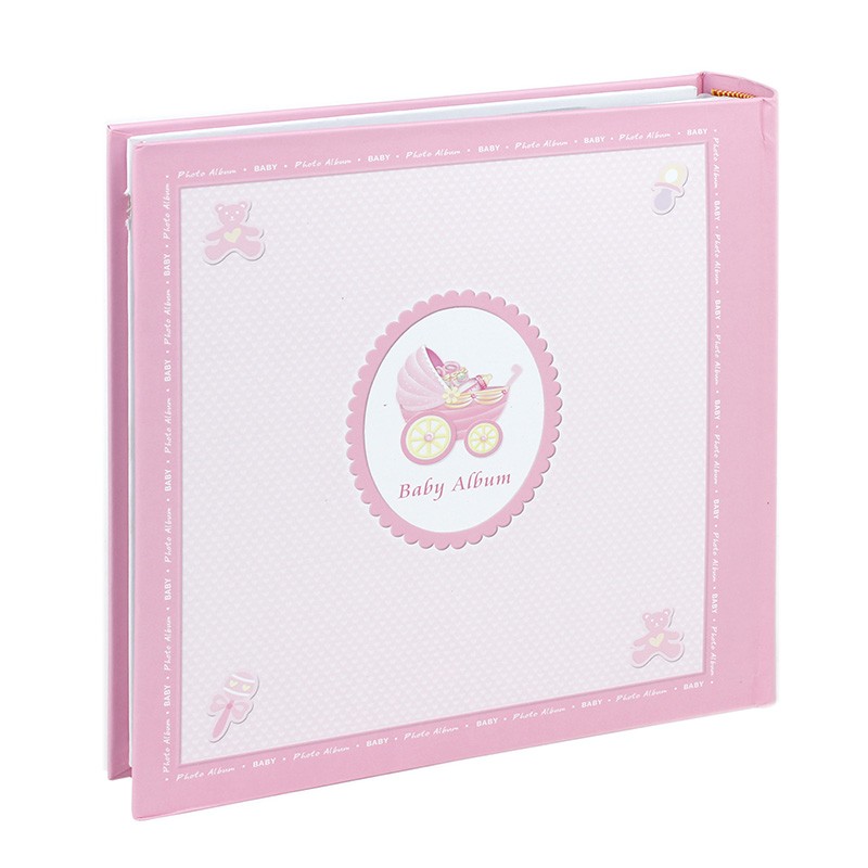 Album foto pentru bebeluși personalizabil, 200 poze 10x15, amprente, roz cu cutie