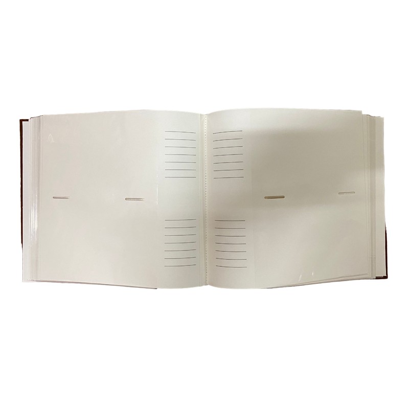 In interior acesta este prevazut cu 200 de buzunare slip-in pentru formatul foto 10x15. Paginile sunt cartonate, iar in partea laterala a fiecarei fotografii se afla un spatiu de notite. Coperta cartonata este acoperita cu o catifea maro inchis pentru un aspect elegant.