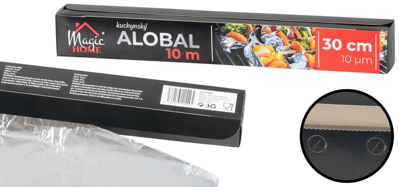 Alobal je vyrobený z kvalitného hliníka a disponuje praktickými rozmermi, ktoré pokryjú väčšinu bežných kuchynských potrieb. Hodí sa na pečenie v klasickej rúre, kde spoľahlivo zachováva vlhkosť a teplo pokrmu. Pri správnom používaní predĺži čerstvosť zabalených potravín a uľahčí čistenie pekáčov aj foriem.