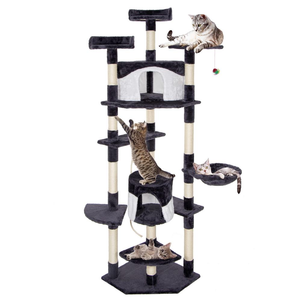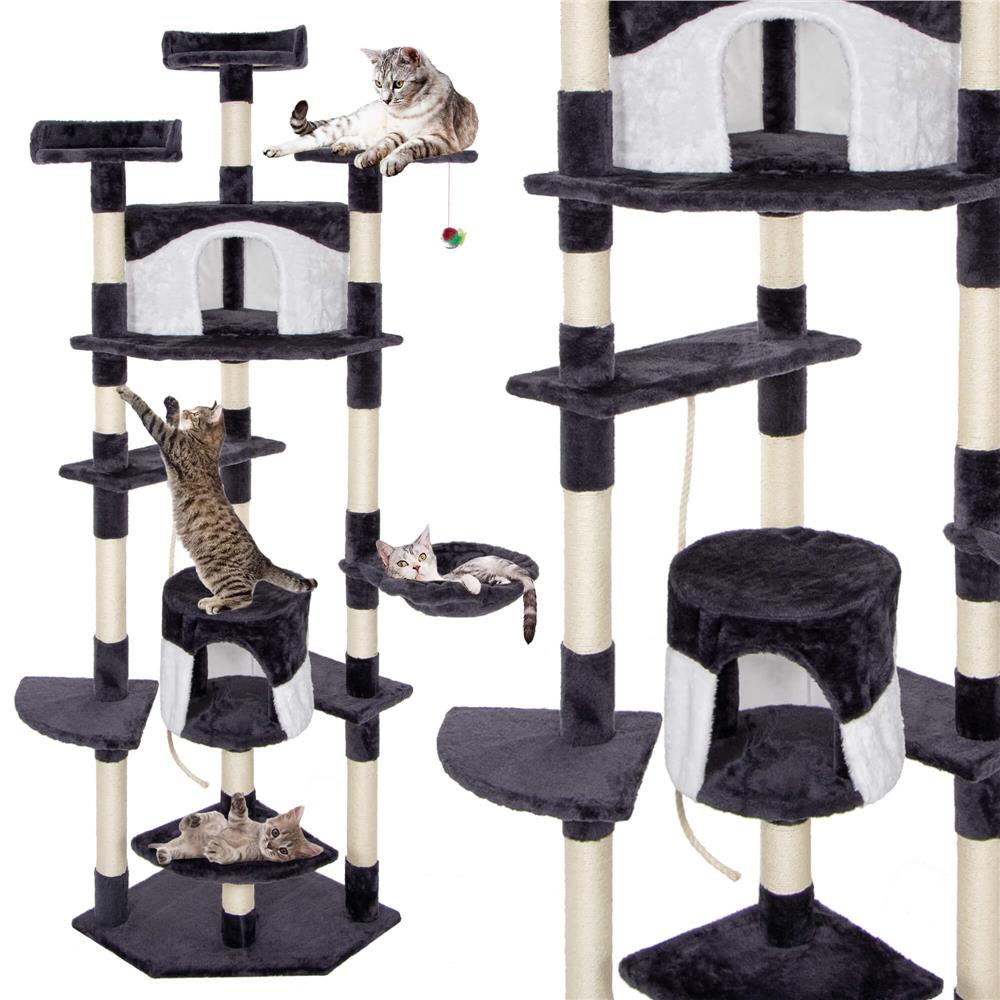 Culoare: crem / gri inchis / alb Numar de niveluri: 11 Produs care trebuie asamblat de catre dumneavoastra conform instructiunilor incluse Dimensiuni: Baza de zgariere: 50 x 50 x 1,5 cm (lungime x latime x grosime) Inaltime totala: 203 cm Dimensiunea unei platforme: 30 x 30 x 30 x 1,5 cm (lungime x latime x grosime) Dimensiunea platformei 2: 50 x 19,5 x 19,5 x 1,5 cm (lungime x latime x grosime) Dimensiunea platformei 3: 30 x 30 x 30 x 1,5 cm (lungime x latime x grosime) Dimensiunea casei: 30 x 28,5 cm (diametru x inaltime) Dimensiunea barlogului: 32 x 9 cm (diametru x inaltime) Dimensiunea platformei 4: 50 x 19,5 x 1,5 cm (lungime x latime x grosime) Dimensiunea platformei 5 : 50 x 50 x 50 x 1,5 cm (lungime x latime x grosime) Dimensiunea casei 2: 35 x 35 x 28,5 cm (lungime x latime x inaltime) Dimensiunea platformei 6: 30 x 24,5 x 1,5 cm (lungime x latime x grosime) Dimensiunea platformei 7: 28,5 cm x 1,5 cm (diametru x grosime) Dimensiunea platformei 8: 29 cm x 1,5 cm (diametru x grosime) Jucarie suspendata: 14 - 27 cm x 4,3 cm (lungimea snurului x diametru) Diametrul tuburilor de constructie: 12 x 6,5 cm Aranjament: Inaltimea de la baza la platforma 1 : 24,5 cm Inaltimea de la platforma 1 pana la casa: 24 cm Inaltimea de la baza pana la a 3-a platforma: 49,5 cm Inaltimea de la baza pana la pat: 80 cm Inaltimea de la pat pana la a 4-a platforma: 20 cm Inaltimea de la a 4-a platforma la a 5-a platforma: 28 cm Inaltimea de la a 5-a platforma la a 6-a platforma: cm 28 cm Inaltimea de la a 6-a platforma la a 7-a platforma: 39 cm Inaltimea de la partea superioara a casei pana la platforma 8: 35 cm Vrei ca pisica ta sa se distreze la nesfarsit intr-un loc placut unde si relaxant? Aceasta este implinirea celor mai profunde vise atat ale proprietarilor, cat si ale animalelor lor de companie – un stalp de zgarieturi pe mai multe niveluri! Stabilitate: stalpul este proiectat pentru o stabilitate neclintita. Pisica ta poate sa se catere, sa sara si sa se zgarie fara griji. Design pe mai multe niveluri pentru joc optim: locul de joaca ofera nu doar unul, ci mai multe niveluri de explorat. Pisica ta poate urca pe varfuri si cobori in adancuri, descoperind noi perspective de joaca si relaxare. Placut la atingere: realizat dintr-un material exceptional de placut la atingere, stalpul de zgariere ofera labei pisicii sensibilitatea si confortul de care are nevoie. Durabilitate: realizat din material durabil, va rezista nu numai la zgarieturile de zi cu zi, ci si la multe luni de utilizare intensiva, asigurand durabilitate ani de zile. Distractie si bucurie: Cu o varietate de niveluri si locuri ascunse de explorat, pisica ta va gasi o multime de moduri de a petrece timp activ si distractiv. Materiale naturale, sigure pentru pisici: sfoara din jurul stalpilor este fabricata din sisal, o fibra tare si foarte durabila. Acesta este cu siguranta momentul potrivit pentru a oferi pisicii tale iubite un loc ideal de dezvoltare, joaca si odihna. Locul nostru de joaca nu este doar o piesa de mobilier, este o oaza de placere pentru animalul tau de companie. Nu mai astepta – ofera pisicii tale un cadou care ii va ridica calitatea vietii la un nivel complet nou!