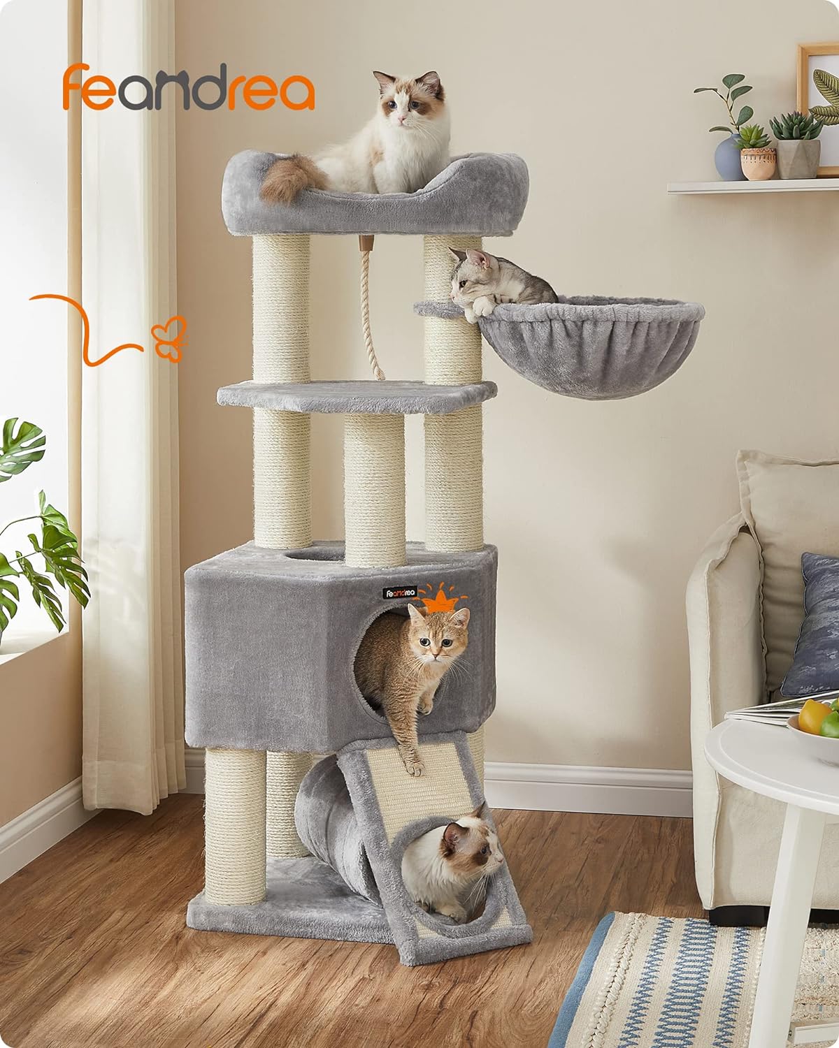 Ofera-i felinei tale un spatiu complet pentru relaxare, catarare si joaca cu acest ansamblu de joaca pentru pisici FEANDREA. Conceput special pentru pisici de talie mare, modelul are o structura stabila, suprafete moi plusate si multiple zone de distractie: hamac pentru pisici, platforma de observatie, cusca spatioasa, tunel si stalpi rezistenti din sisal pentru zgariat.