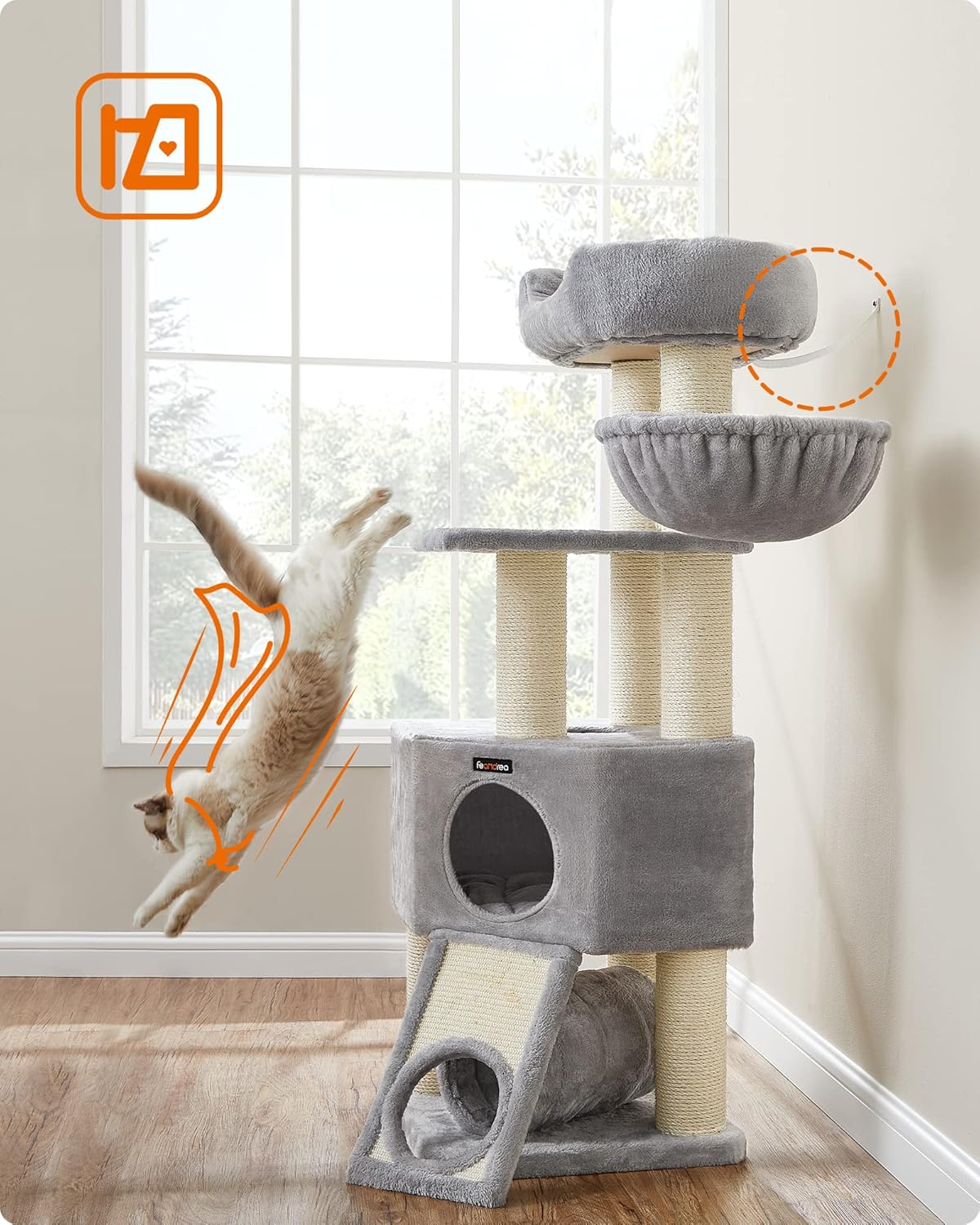 Datorita designului pe mai multe niveluri, acest copac pentru pisici este potrivit atat pentru pui, cat si pentru pisici adulte sau mai in varsta, care pot urca si cobori mai usor. Baza lata, stalpii grosi si sistemul anti-rasturnare inclus contribuie la o utilizare sigura si stabila in fiecare zi.
