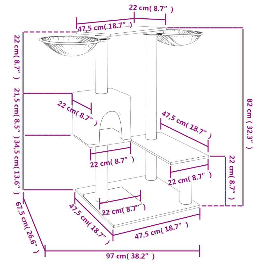 Specificatii Ansamblu pisici stâlpi zgâriat, crem, 82