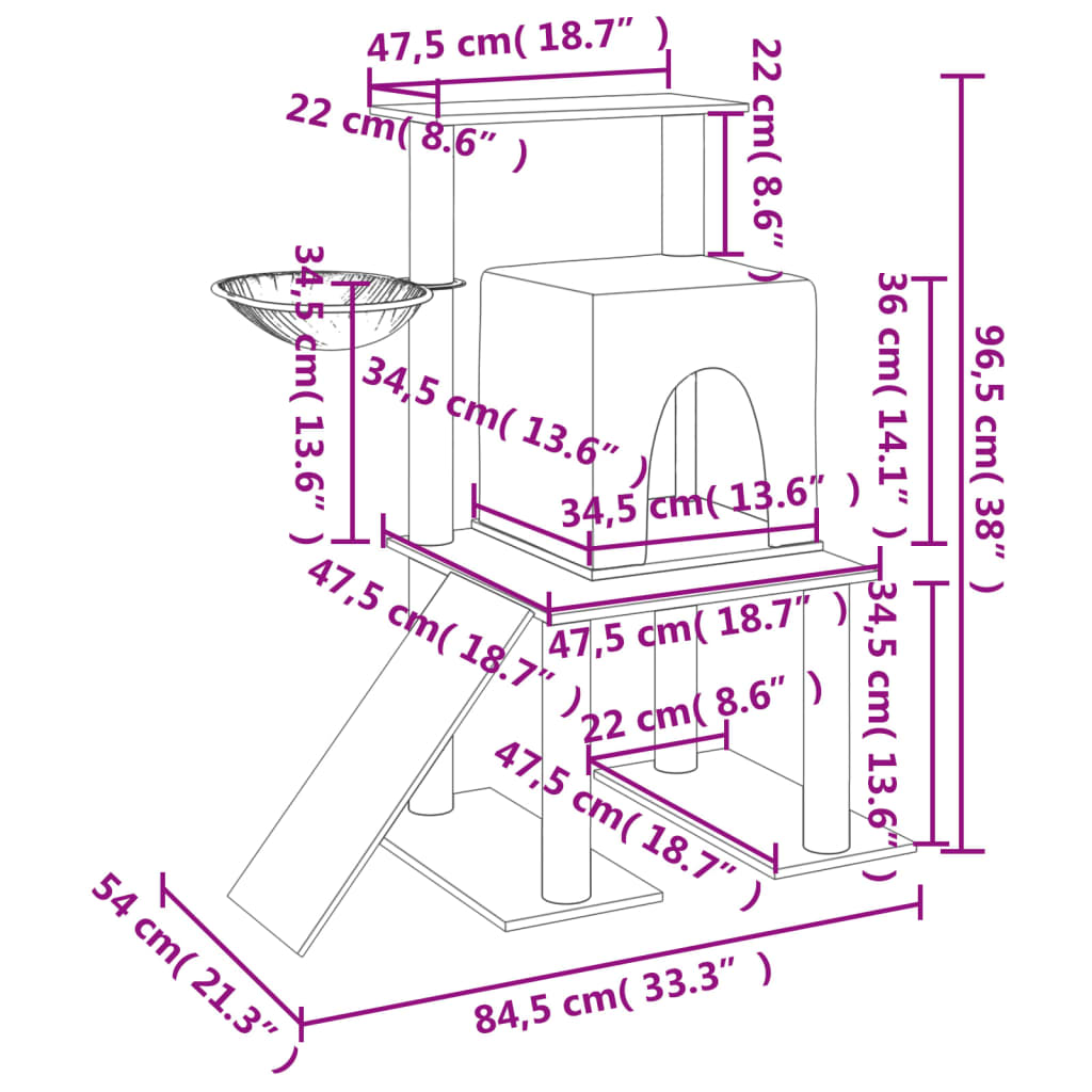 - Turn pentru pisici versatil: Mobilierul pentru pisici pe mai multe niveluri este proiectat cu o casă, o scară, un coș și o platformă, oferind un loc perfect pentru ca pisicile dvs. să se cațere, să se cocoațe, să zgârie, să se ascundă și, de asemenea, să se relaxeze.