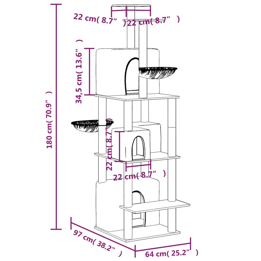 - Turn pentru pisici versatil: Mobilierul pentru pisici pe mai multe niveluri este proiectat cu 4 case, 2 hamace și platforme, oferind un loc perfect pentru ca pisicile dvs. să se cațere, să se cocoațe, să zgârie, să se ascundă și, de asemenea, să se relaxeze.