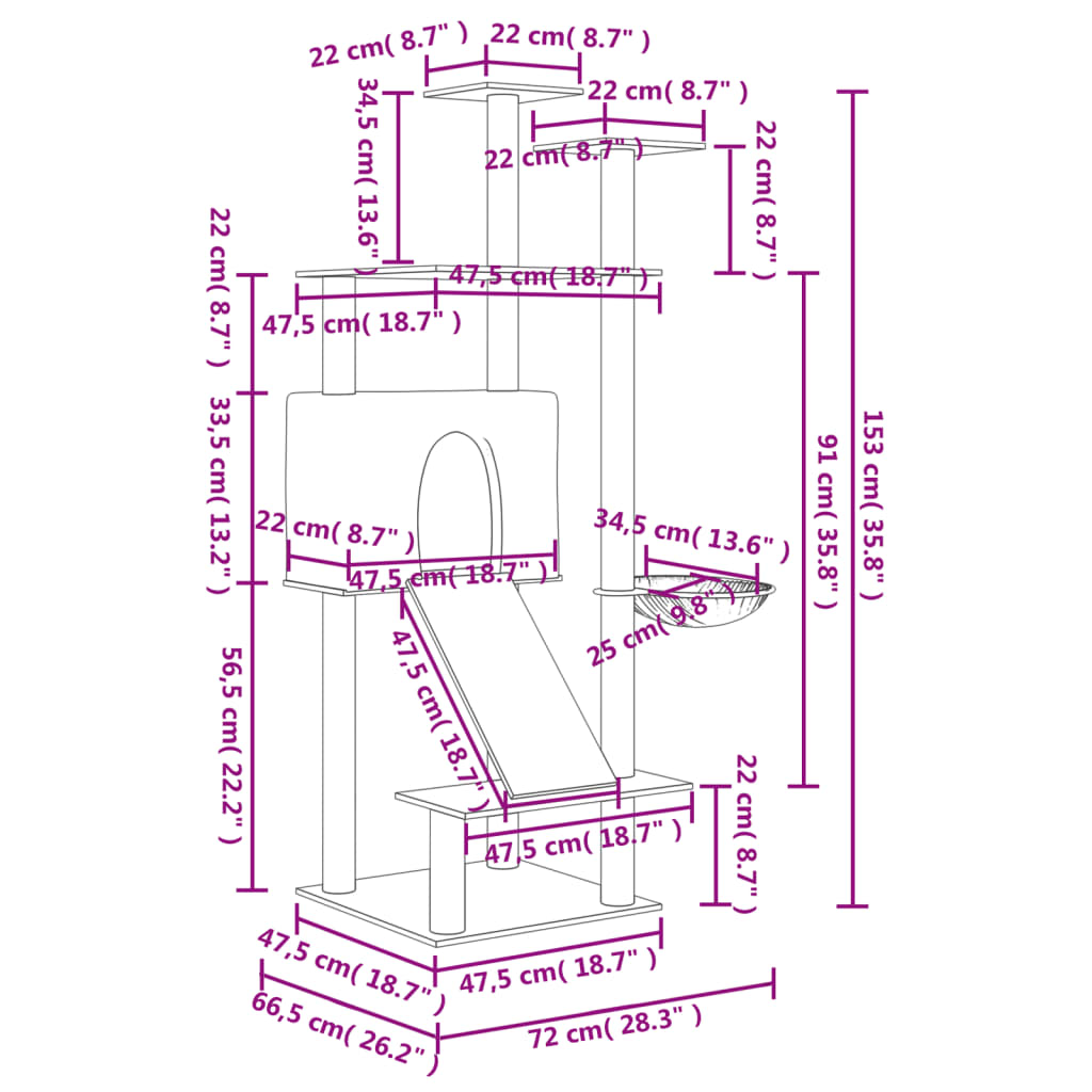 Ansamblu de pisici, stâlpi din funie sisal, gri închis, 153 cm GartenMobel Dekor