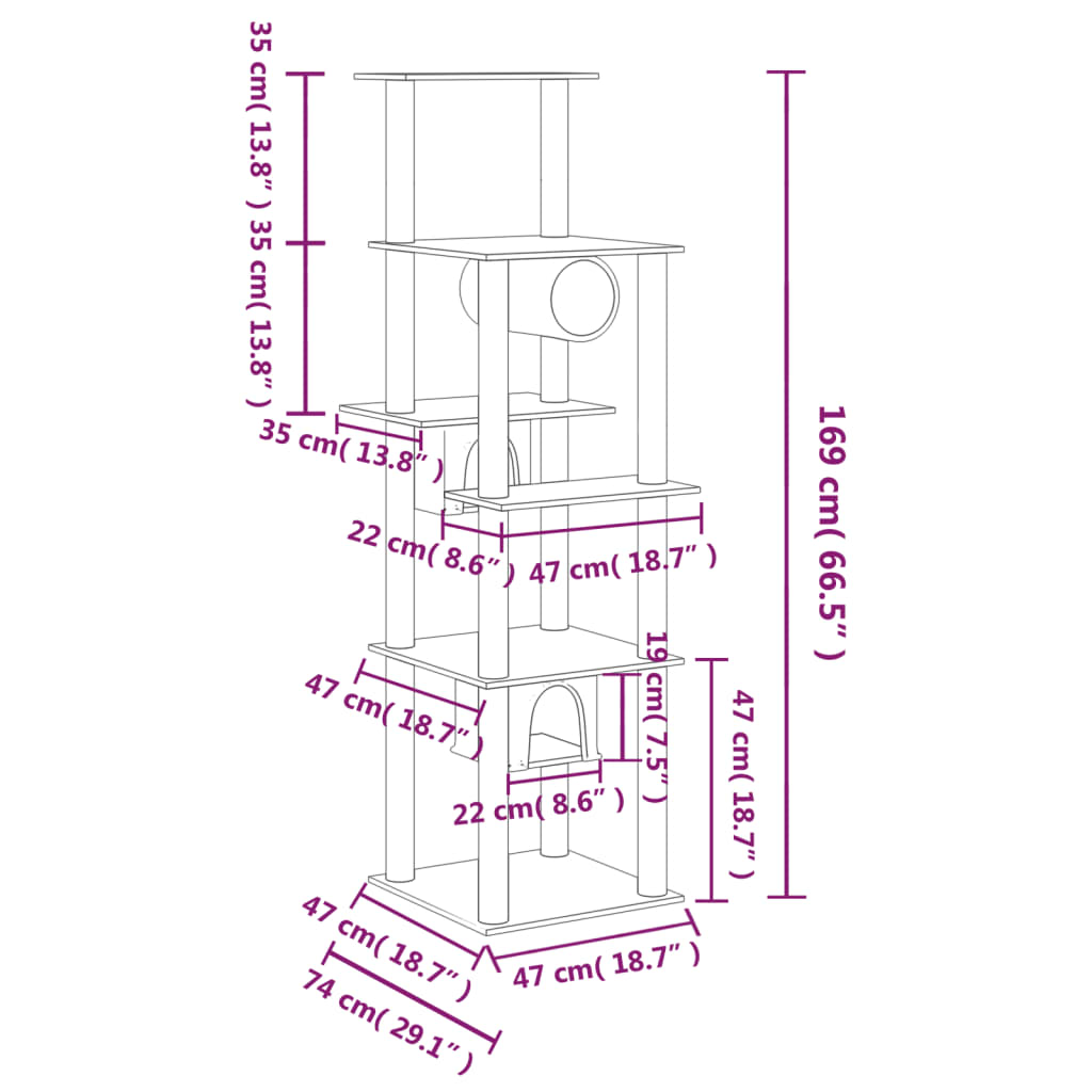 - Turn pentru pisici versatil: Mobilierul pentru pisici pe mai multe niveluri este proiectat cu 2 case, 1 tunel și platforme, oferind un loc perfect pentru ca pisicile dvs. să se cațere, să se cocoațe, să zgârie, să se ascundă și, de asemenea, să se relaxeze.