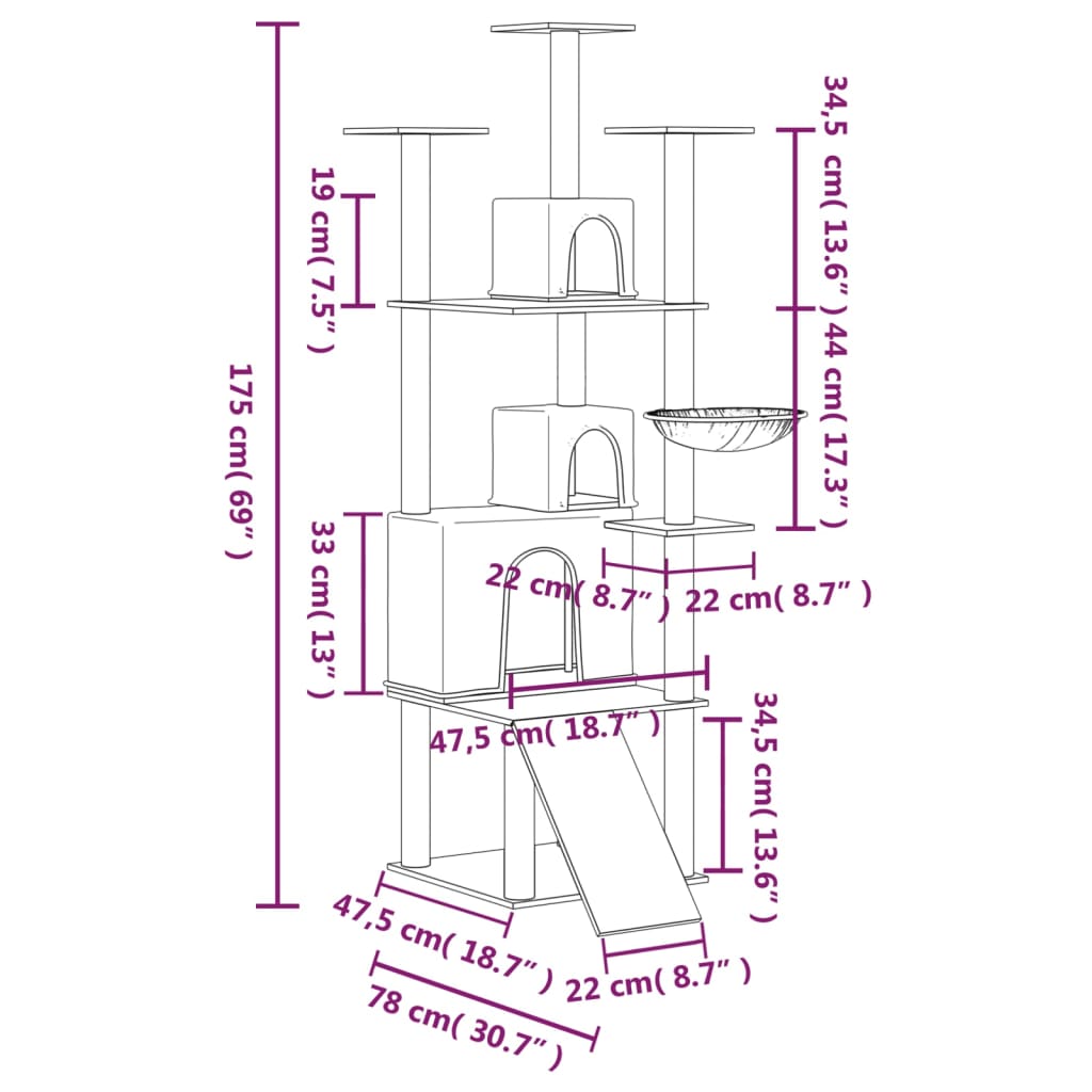 Ansamblu de pisici, stâlpi din funie sisal, gri închis, 175 cm GartenMobel Dekor