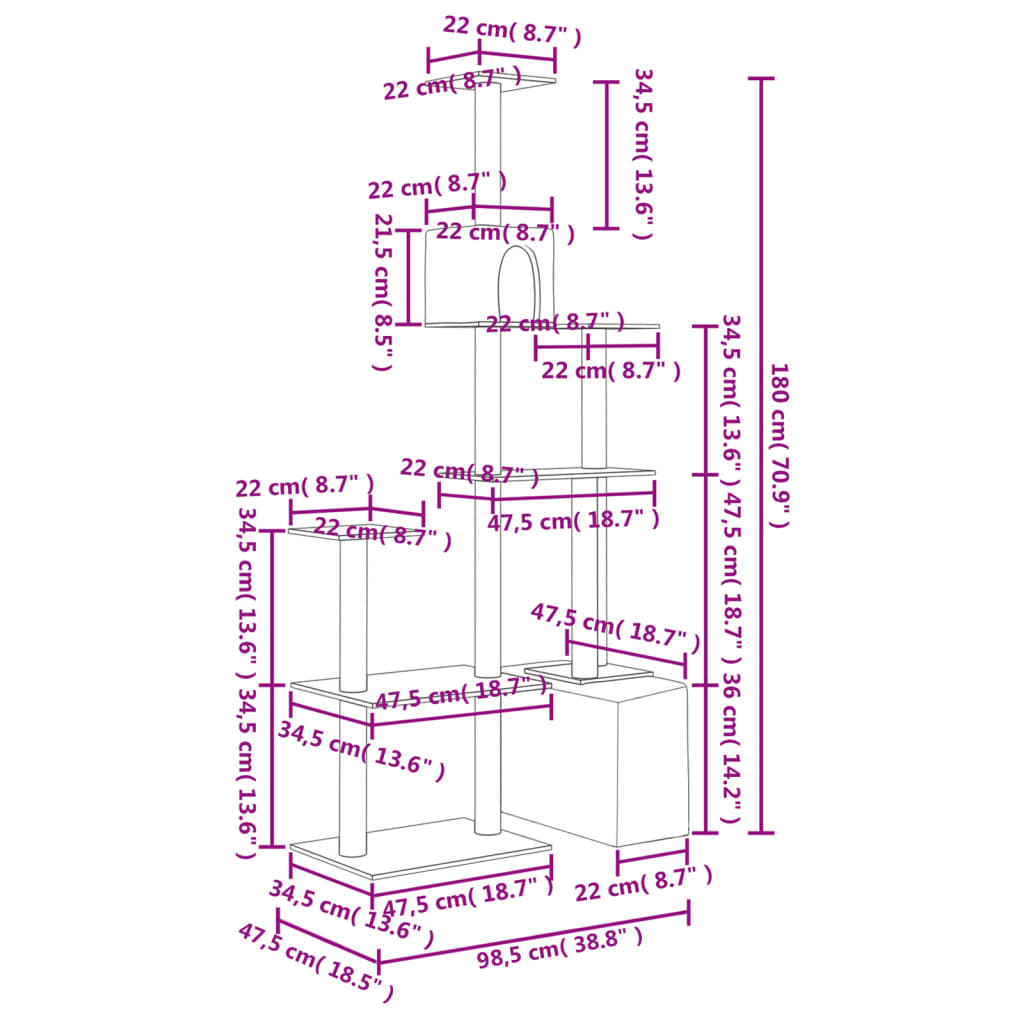 Ansamblu de pisici, stâlpi din funie sisal, gri închis, 180 cm GartenMobel Dekor