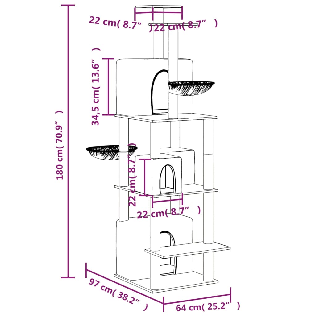 Ansamblu de pisici, stâlpi din funie sisal, gri închis, 180 cm GartenMobel Dekor