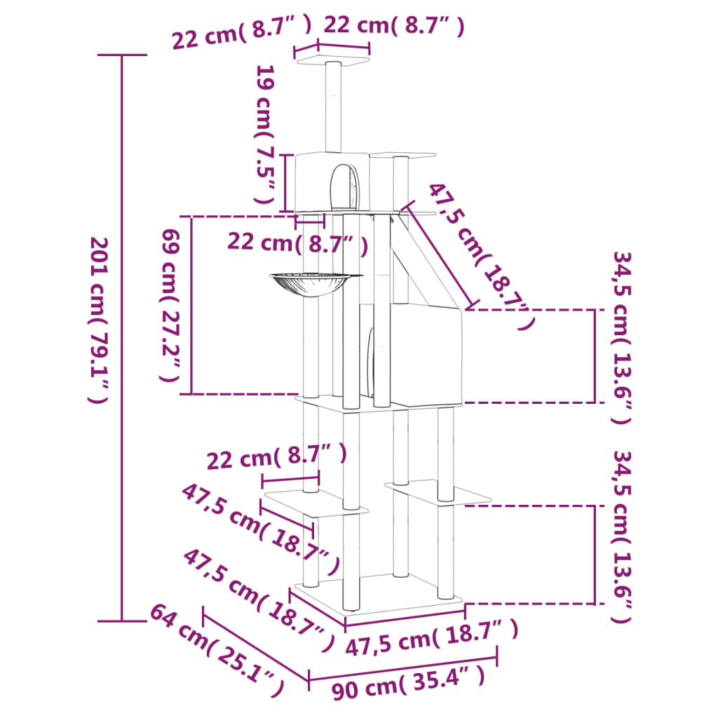 Ansamblu de pisici, stâlpi din funie sisal, gri închis, 201 cm GartenMobel Dekor