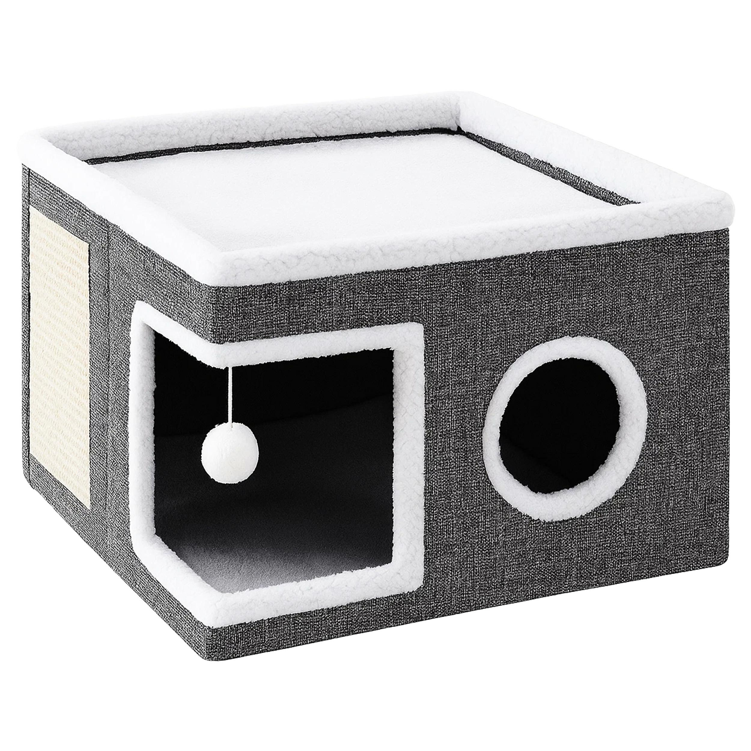 Ansamblu de zgariat pentru pisici cu casuta, pat superior si jucarie 42x42x30 cm