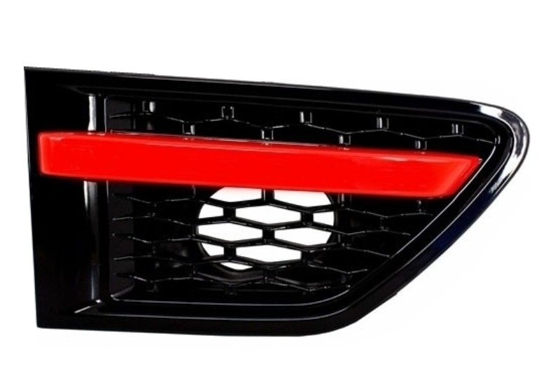 Ansamblu Grila Centrala si Grile Laterale Land compatibil cu ROVER Range compatibil cu ROVER Sport Facelift (2010-2013) L320 Autobiography Look Black Red Edition Compatibil cu: Range Rover Sport Facelift (2010-2013) Nu este compatibil cu: Range Rover Sport Pre Facelift (2005-2009)