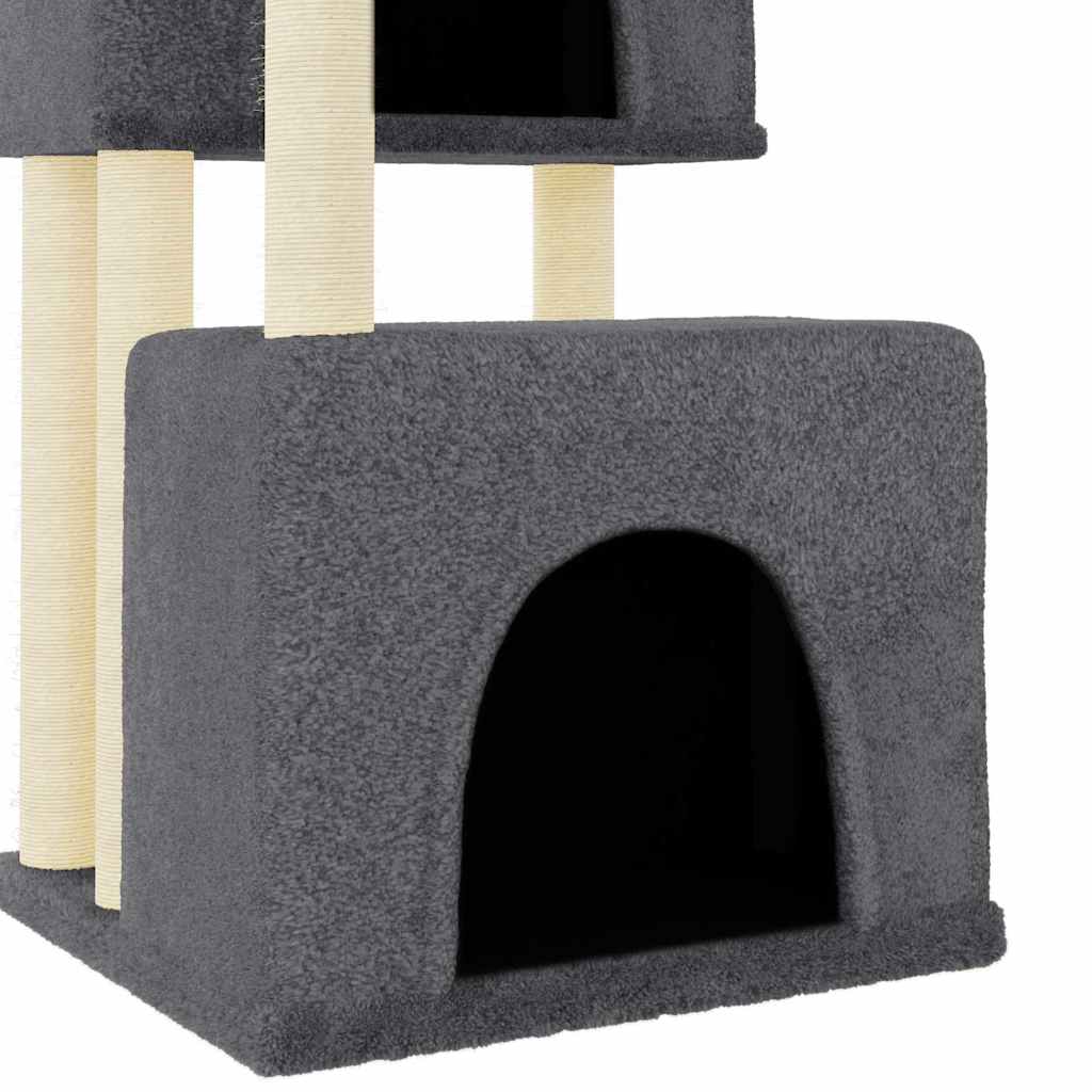 Ansamblu pisici cu stâlpi din funie sisal, gri închis, 122 cm GartenMobel Dekor