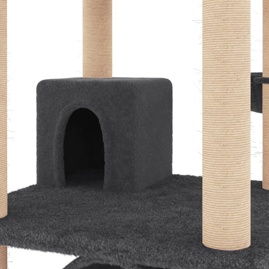 Ansamblu pisici cu stâlpi din funie sisal, gri închis, 141 cm GartenMobel Dekor