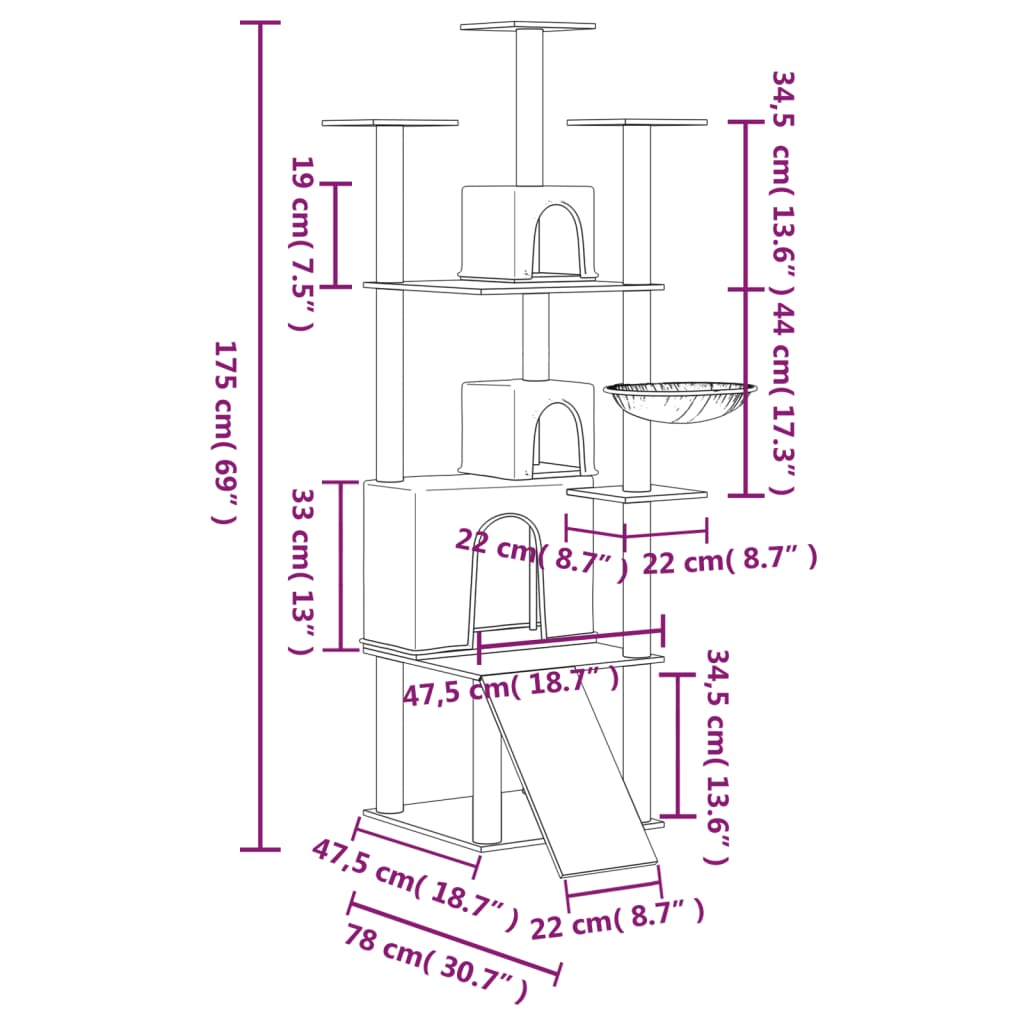 - Turn pentru pisici versatil: Mobilierul pentru pisici cu mai multe niveluri este proiectat cu 3 case, 1 hamac, 1 scară și platforme, oferind un loc perfect pentru ca pisicile dvs. să se cațere, să se cocoațe, să zgârie, să se ascundă și, de asemenea, să se relaxeze.