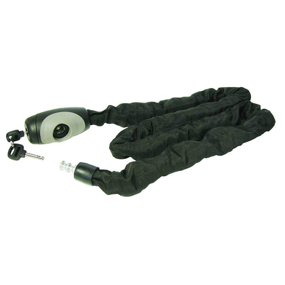 Antifurtul este din lant imbracat cu un material tare de culoare neagra .