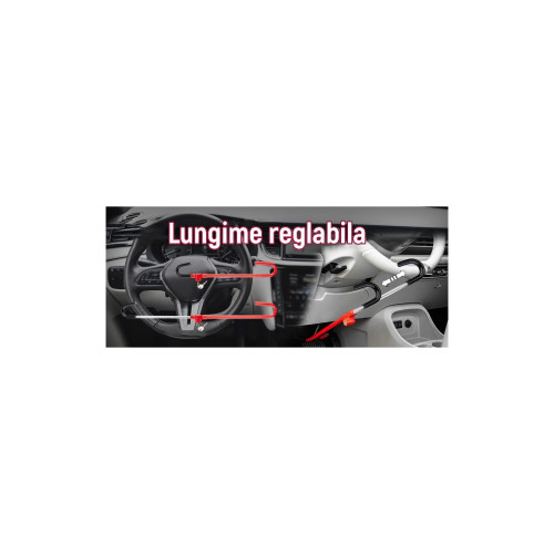 Dispozitivul serveste pentru blocarea volanului de una din pedale pentru a impiedica rotirea acestuia in cazul in care se doreste furtul autoturismul dvs., astfel fiind imposibila manevrarea in curbe sau actionarea pedalei blocate.