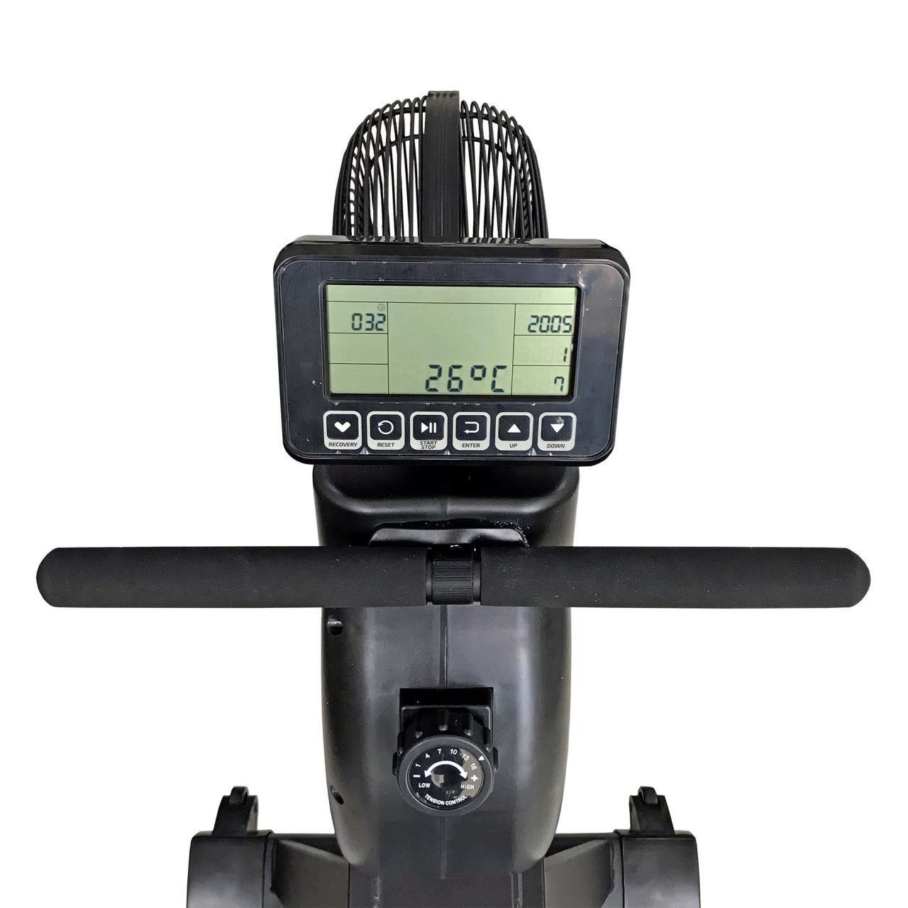Acest model dispune de 15 pozitii de reglare a intensitatii, iar nivelul de rezistenta este determinat de viteza aerului generata de utilizator in timpul vaslitului. Aparatul este echipat cu un display electronic pliabil, care ofera functii multiple, inclusiv monitorizarea timpului, caloriilor, distantei, numarului de repetari si chiar memorarea programelor de antrenament. Display-ul functioneaza cu doua baterii R3, incluse in pachet.