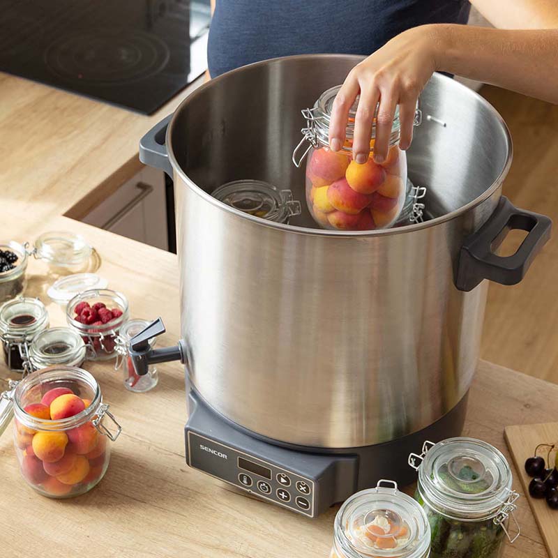 Pe lângă conservarea alimentelor, puteți prepara în mod fiabil cafea, ceai, sosuri, supe, vin fiert, cidru și, puteți chiar prepara bere de casă. Nu doar că le puteți prepara, dar le puteți menține constant calde pentru perioada de timp pe care o alegeți. Toate băuturile pot fi servite de la robinet, iar cantitatea poate fi ajustată manual.