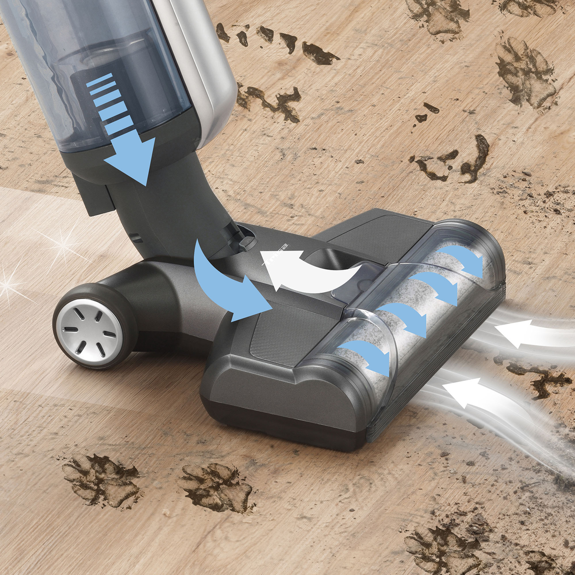Este ideal pentru curățenia de zi cu zi în locuințe cu gresie, parchet tratat, laminat sau alte suprafețe dure. Datorită bateriei Li-Ion de 32 V și puterii constante de aspirare, poți curăța până la 100 mp în aproximativ 30 de minute, într-un mod comod și eficient.