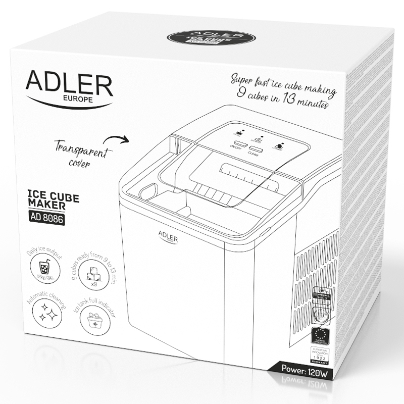 Aparat de făcut gheață Adler AD 8086, 100W, 12 kg/24h, rezervor 1,5 l