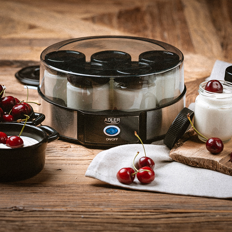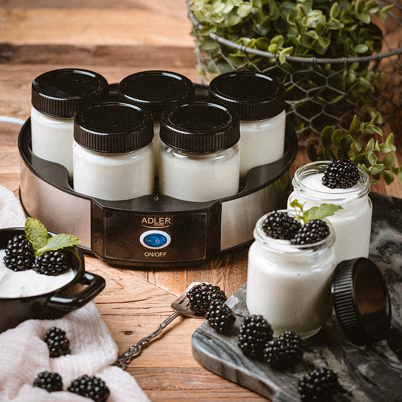 Pentru a produce iaurt proaspăt, sănătos, aveți nevoie doar de trei lucruri: lapte, culturi bacteriene și aparatul de iaurt Adler AD 4476. Dispozitivul vă permite să pregătiți iaurt într-un mod incredibil de simplu. Odată adaugate componentele, restul procesului este automat, fără nicio intervenție a utilizatorului. Iaurtul se face imediat in borcane de sticla cu o capacitate de 200 ml fiecare, ceea ce faciliteaza depozitarea comoda a produsului finit in frigider. Dispozitivul menține o temperatură prietenoasă cu bacteriile din lapte: 42 de grade, datorită căreia producția de iaurt poate fi efectuată rapid și eficient.