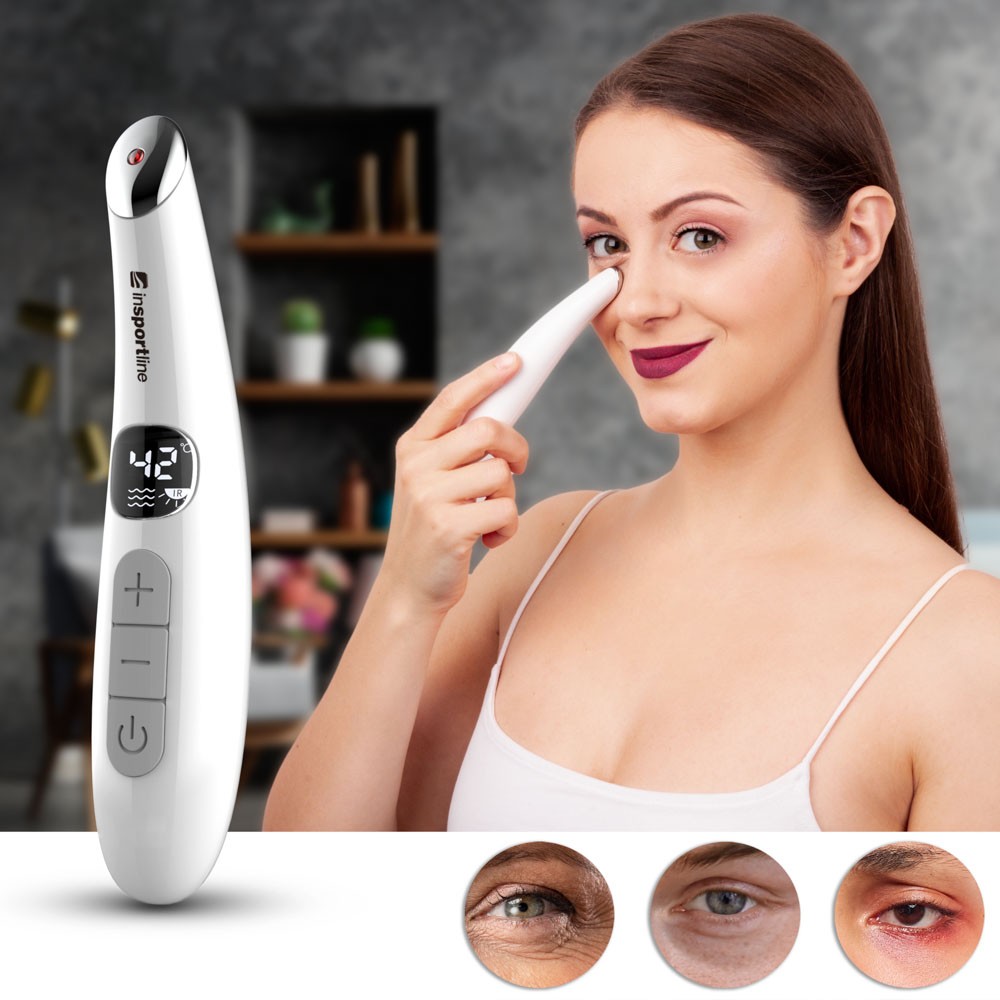Aparatul de masaj cu radiofrecventa pentru ochi inSPORTline Simbora este un instrument compact excelent care va fi apreciat de toti cei care au ochii obositi, fie ca este vorba de lucrul la calculator, de concentrarea indelungata la scoala sau de purtarea ochelarilor. Aparatul produce lumina infrarosie foarte eficienta, care este adesea folosita pentru terapia cu lumina. Atunci cand este utilizata, aceasta radiatie patrunde in straturile mai profunde ale pielii, unde activeaza colagenul, poate lumina pielea si in acelasi timp, poate elimina cearcanele de sub ochi.