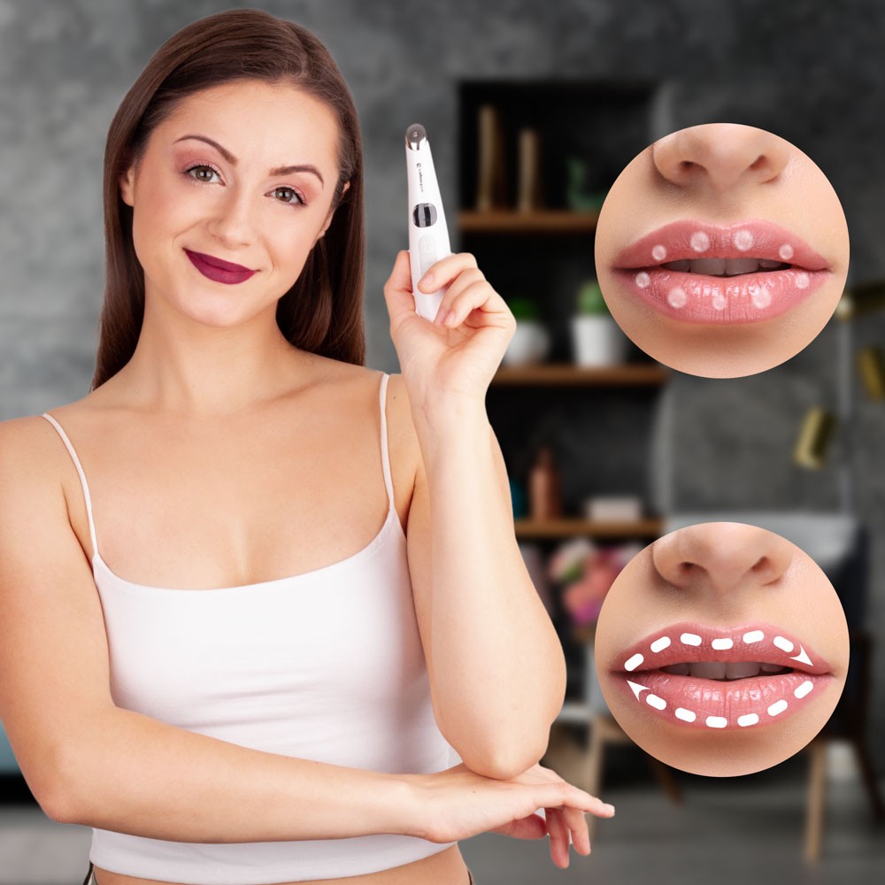 Sfatul nostru: puteti folosi aparatul de masaj chiar si pe buze. Aparatul va asigura o absortie mai buna a produselor cosmetice aplicate pe buze si o circulati mai buna a sangelui.