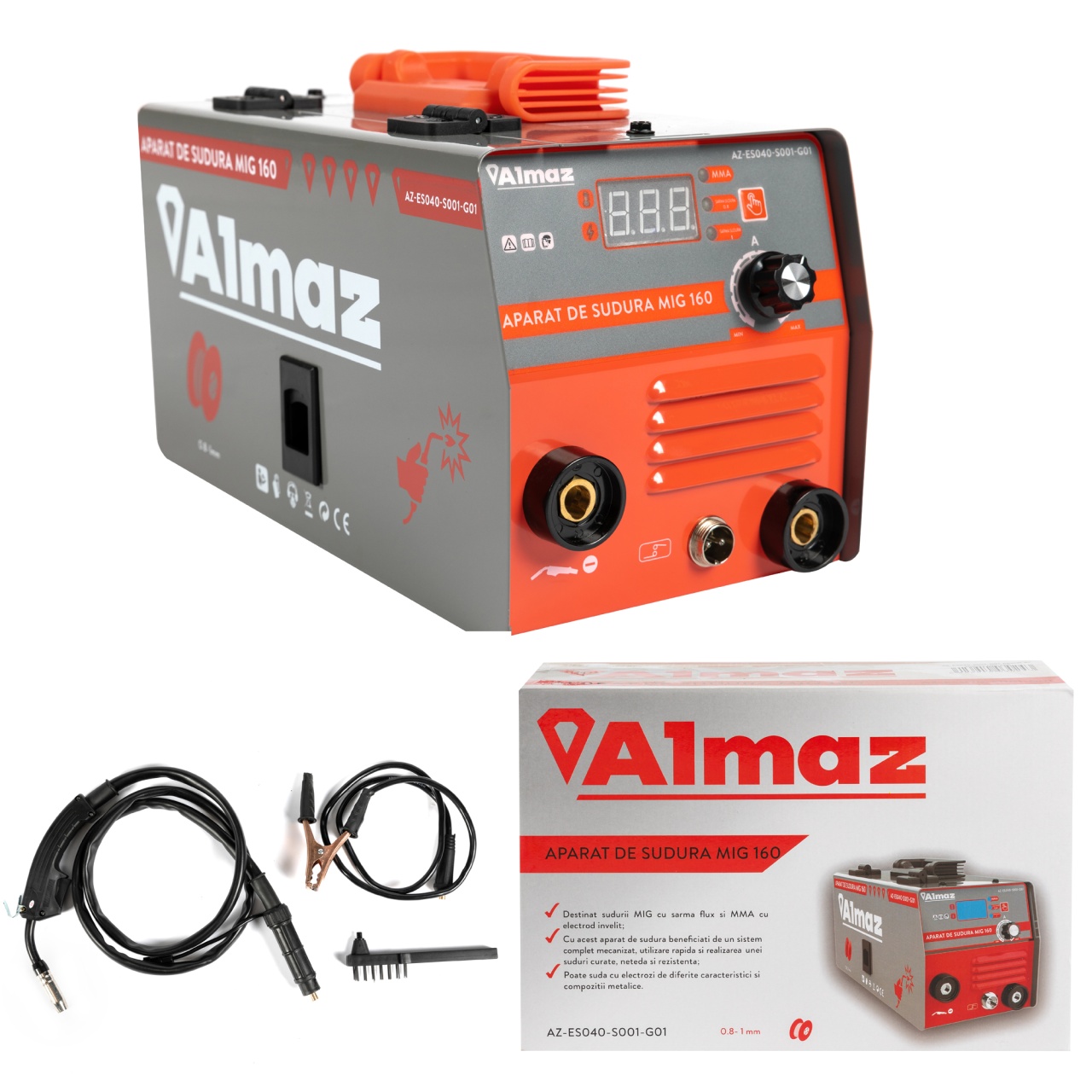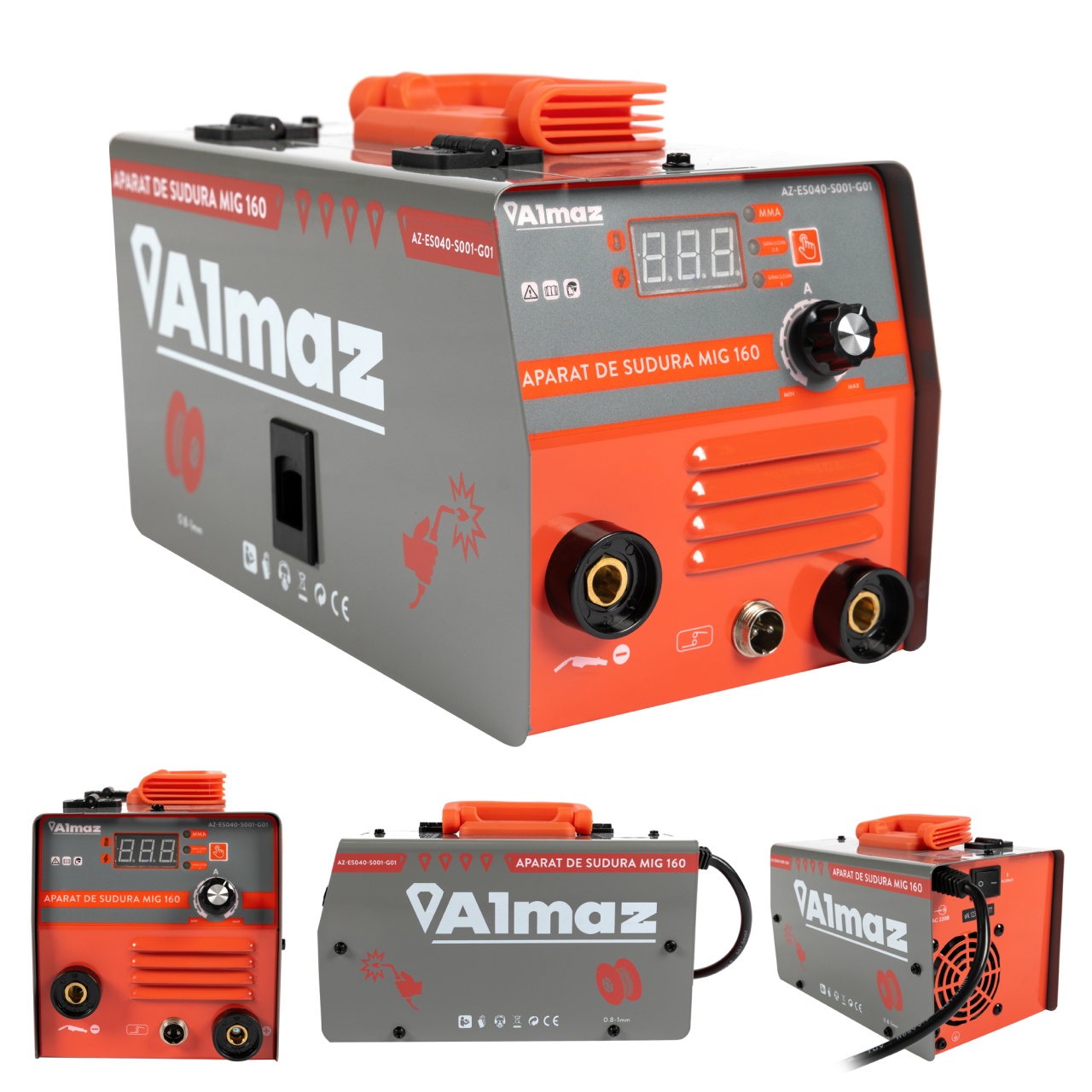 Aparat de sudură Almaz MIG 160 (MMA + FCAW fără gaz), 160A, afișaj digital